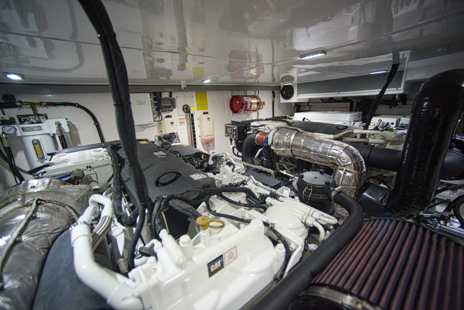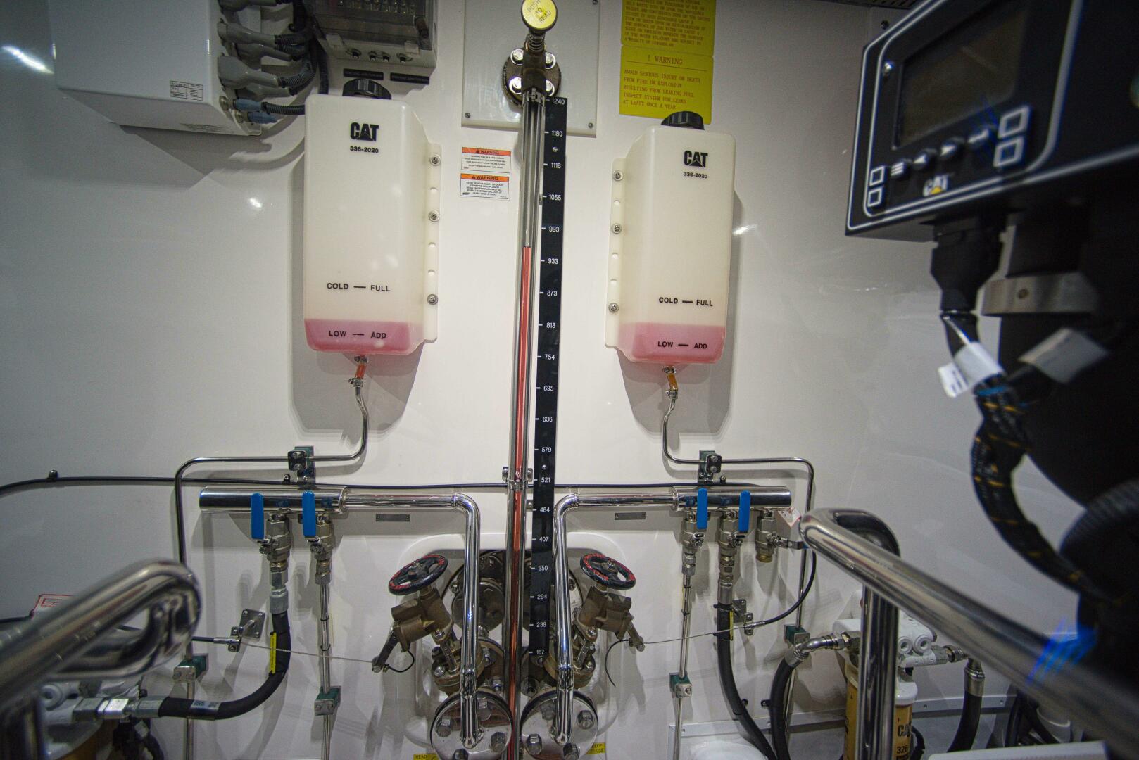 The Caterpillar C12.9's are rated at 1,000 HP each and have 860 hours on them. The engines sit on composite stringers made from Carbon Fiber. The Transmissions connect to the fluid filled shaft system through an intermediate shaft with two sets of U joints, increasing efficiency and eliminating any on going alignment issues. This system also eliminates the need for a conventional salt water cooled shaft seal, eliminating any salt water from drive line. The shaft is fully enclosed in a tube full of synthetic lubrication oil. This system also replaces the conventional cutlass bearing with ball bearings for smooth operation for many years.