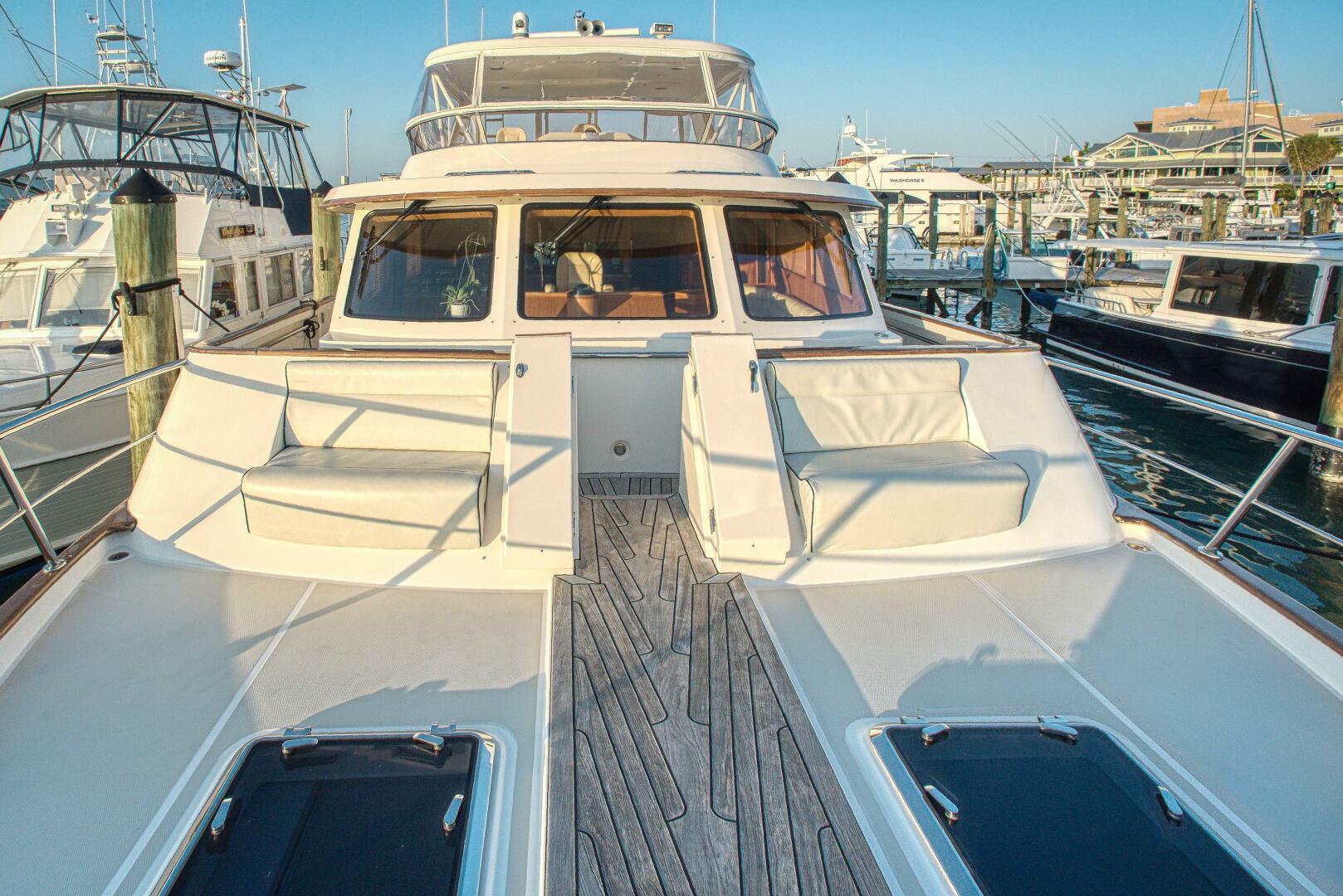 At the Bow you have Bow seating, a dual anchor windlass, and 2 additional 50amp shore power cords for a total of 4 50Amp power cords.