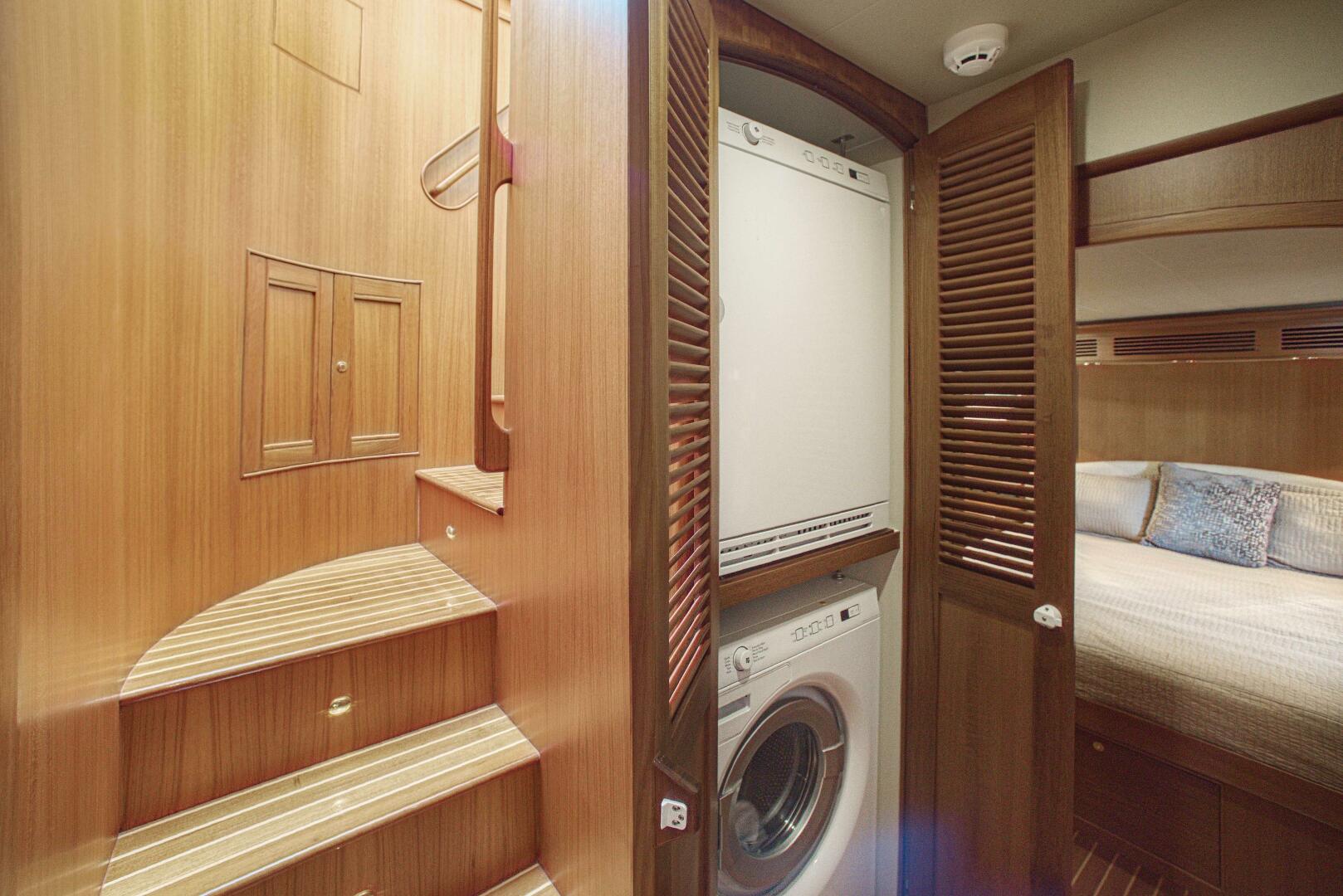 As you go below, the full size washer and dryer are on the starboard side of the hall.