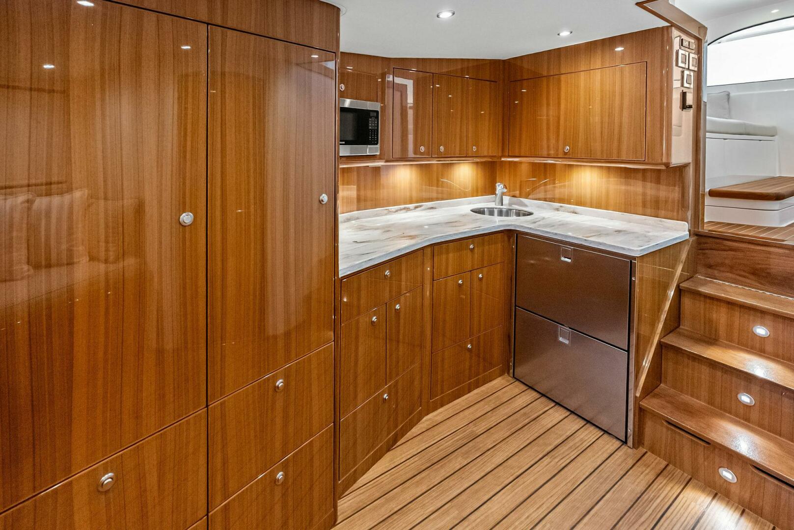 - Galley with Corian countertops, under-counter refrigeration, and Amtico flooring