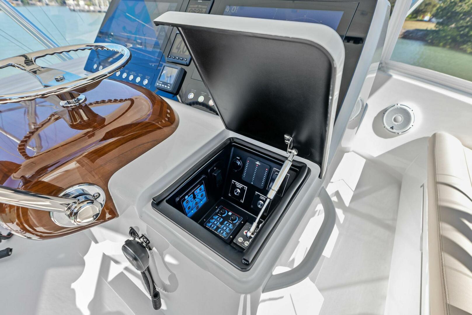 - Teak helm pod with single-lever controls