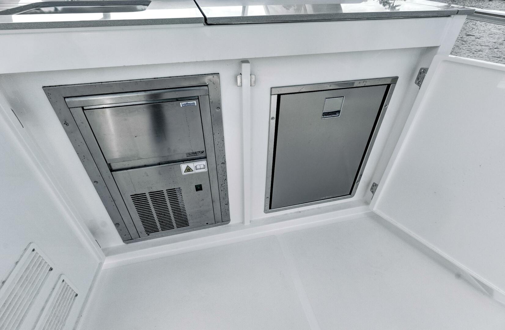 The use of extensive glazing, a familiar Absolute trademark, is particularly visible in the saloon, from where there are fantastic 360-degree views. In addition to air conditioning, natural ventilation can be provided by the electrically-controlled vertically sliding windows. The galley is fully equipped, and, unusually for boats of this size, there is also a spacious pantry.