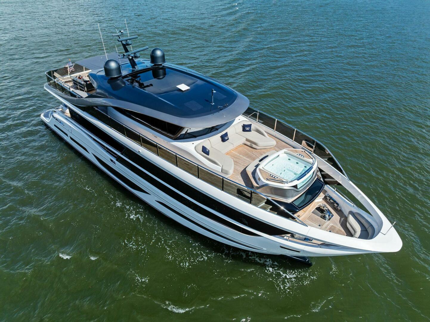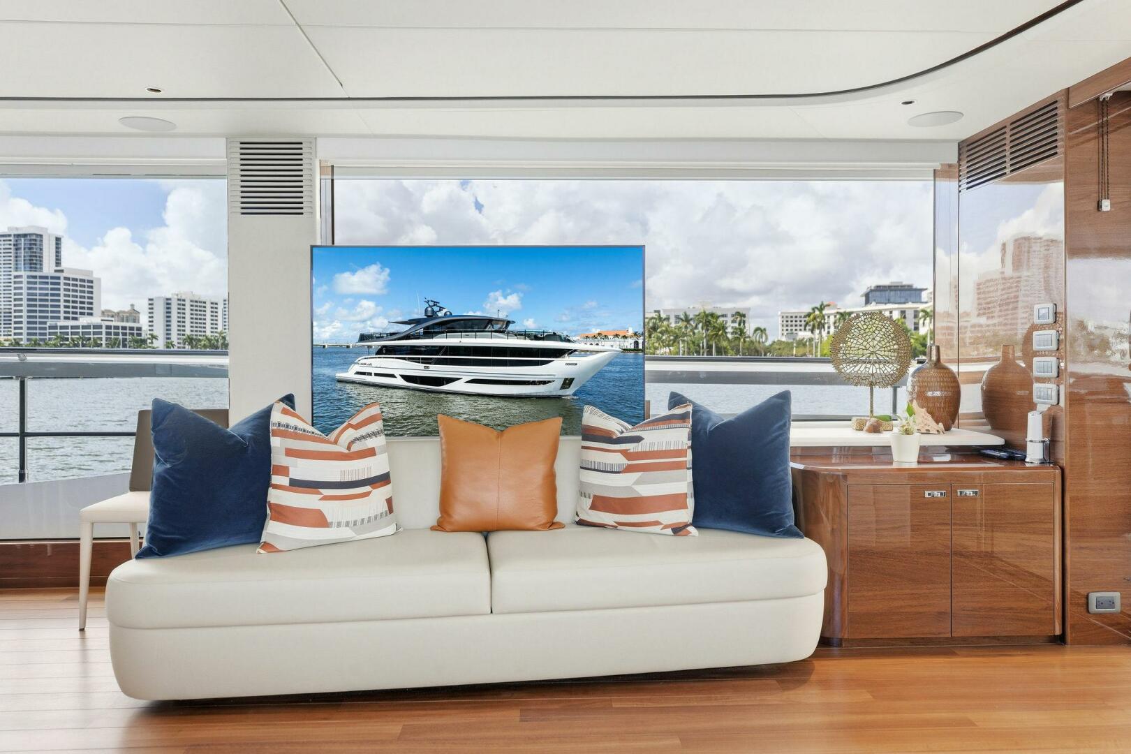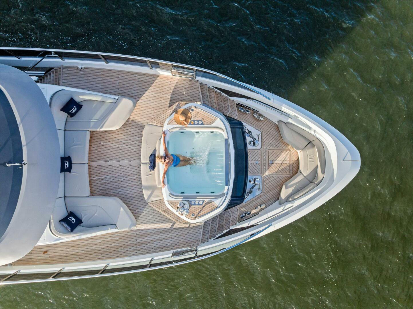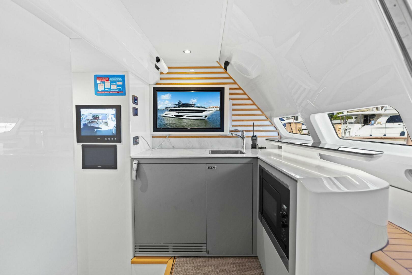- Exterior: 43" hinge-down with Sunbright upgrade TVs (cockpit + flybridge)