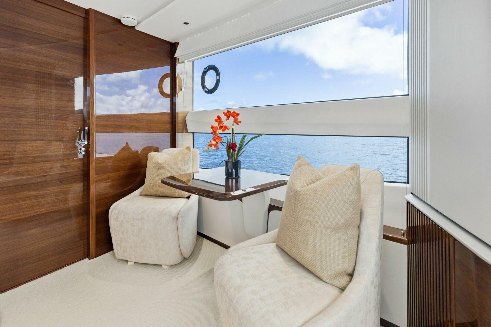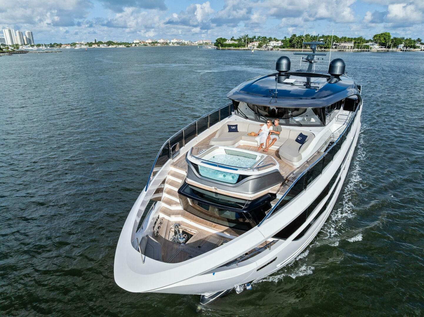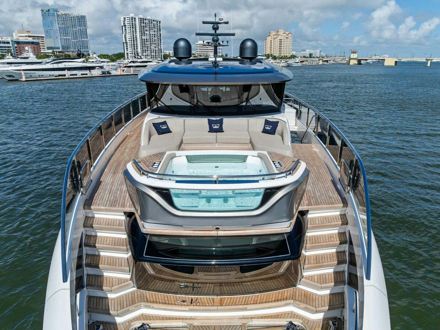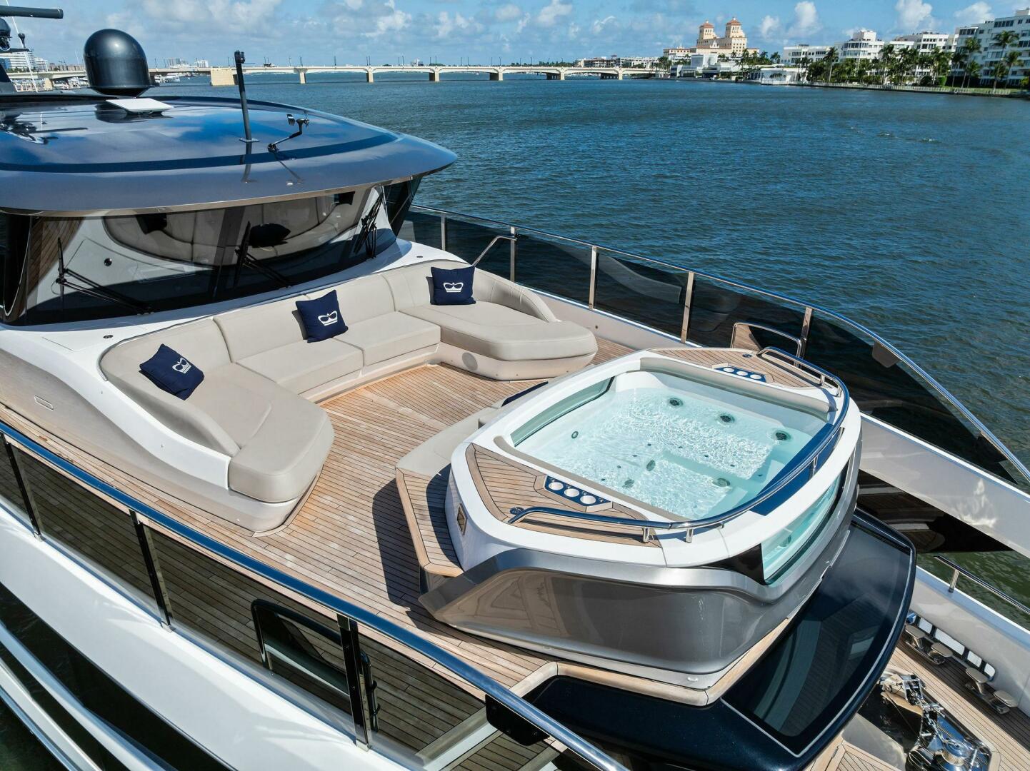 - Exterior: 43" hinge-down with Sunbright upgrade TVs (cockpit + flybridge)