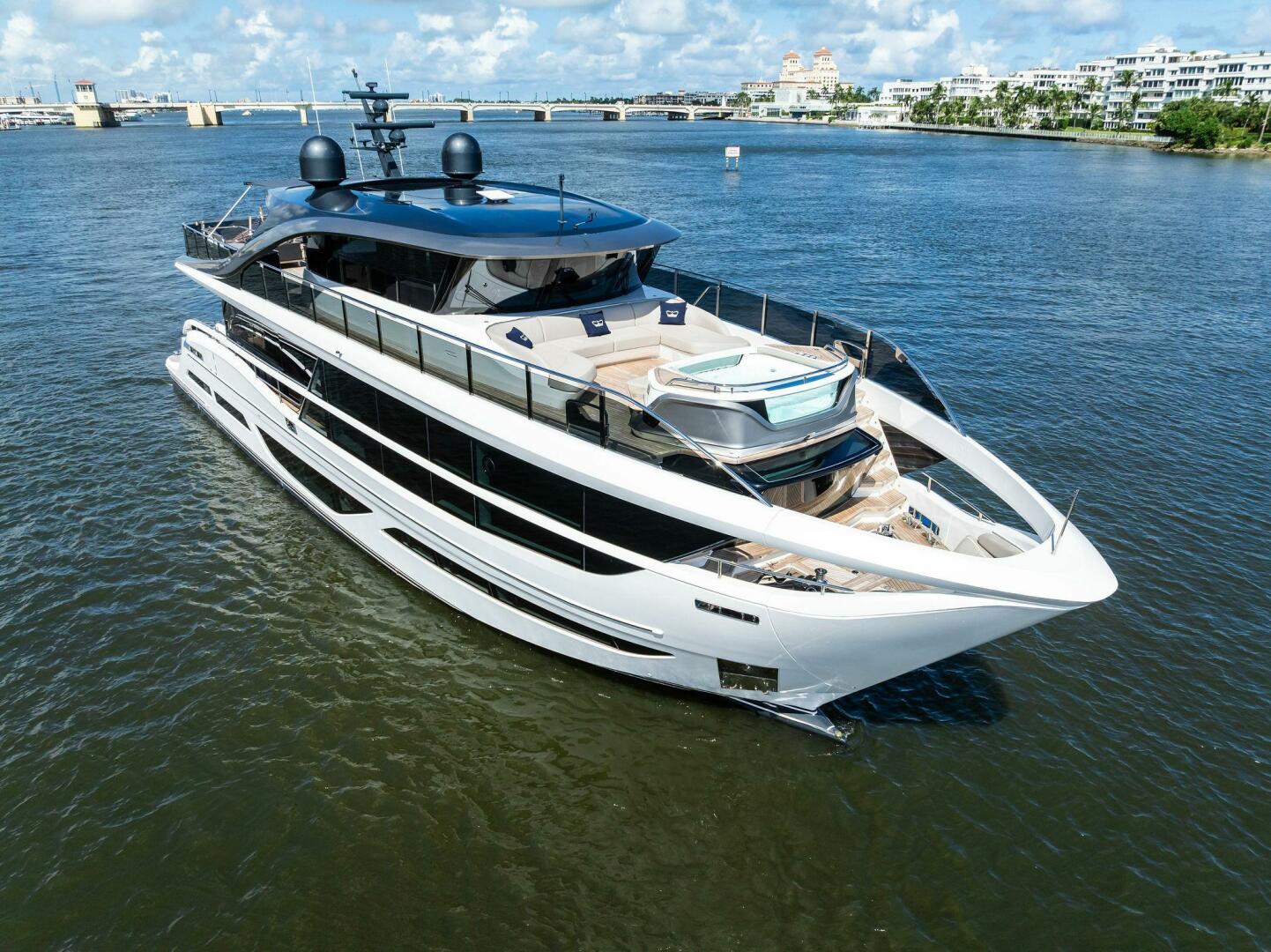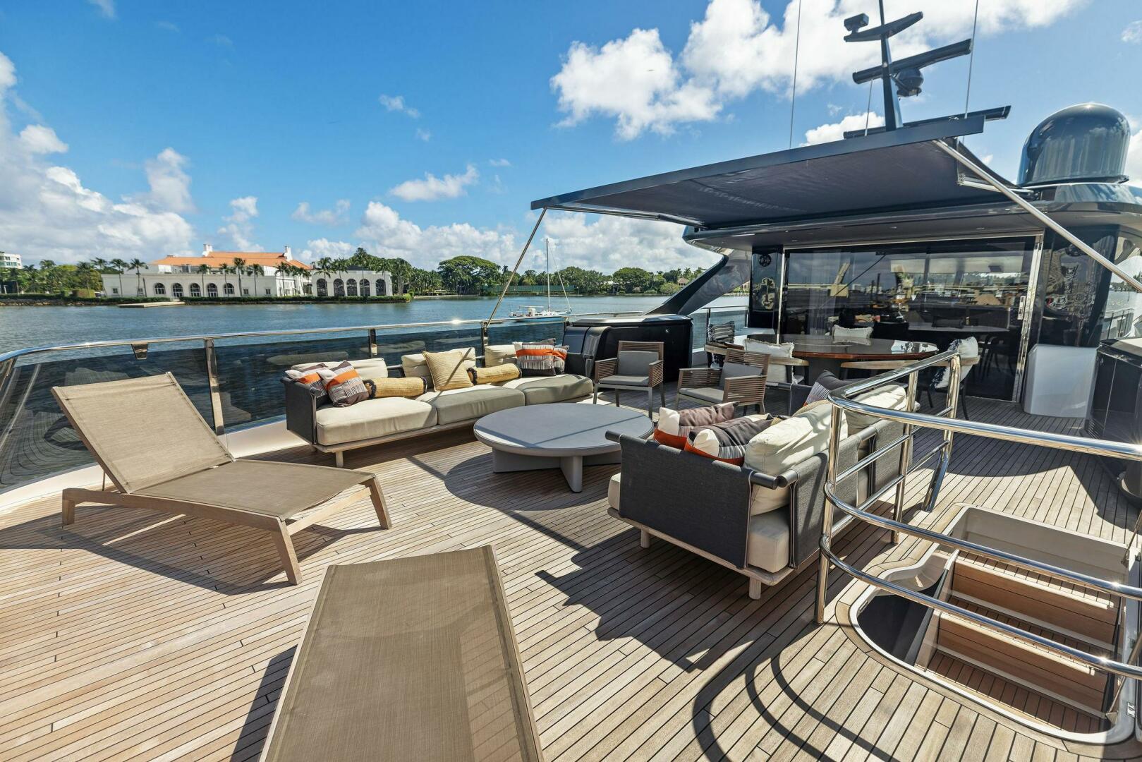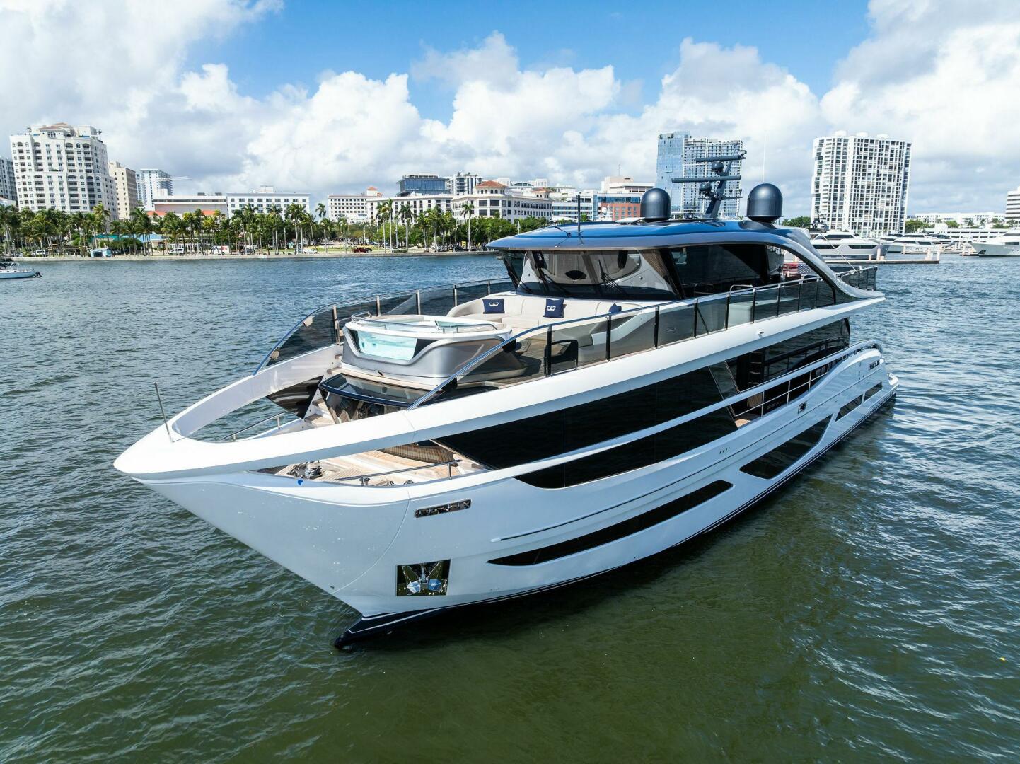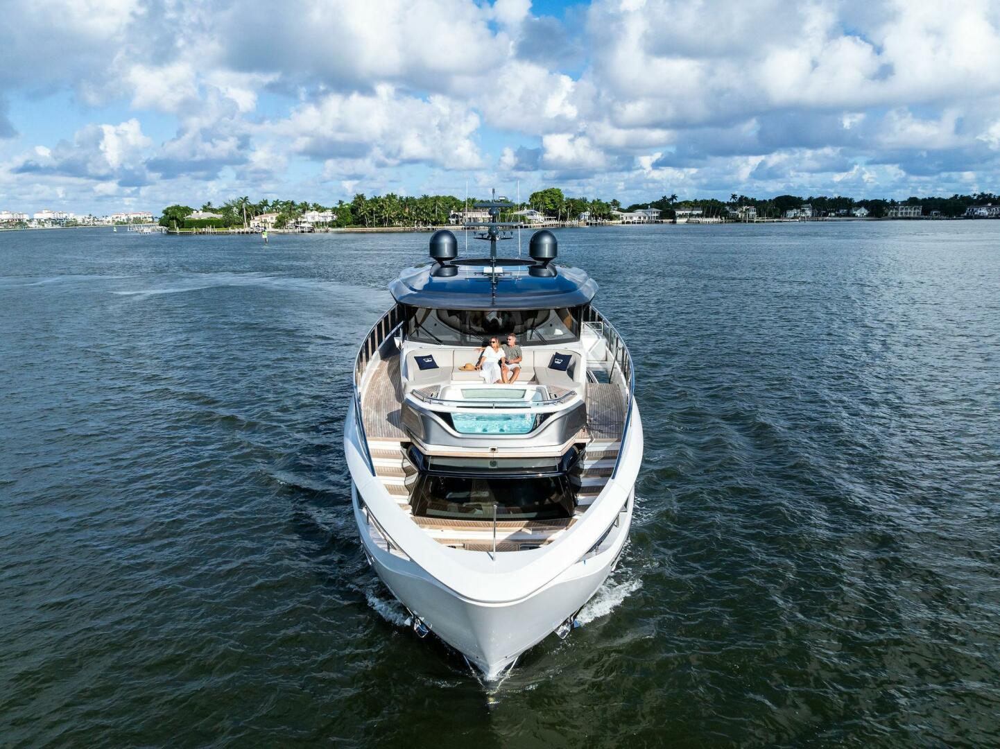 - Exterior: 43" hinge-down with Sunbright upgrade TVs (cockpit + flybridge)