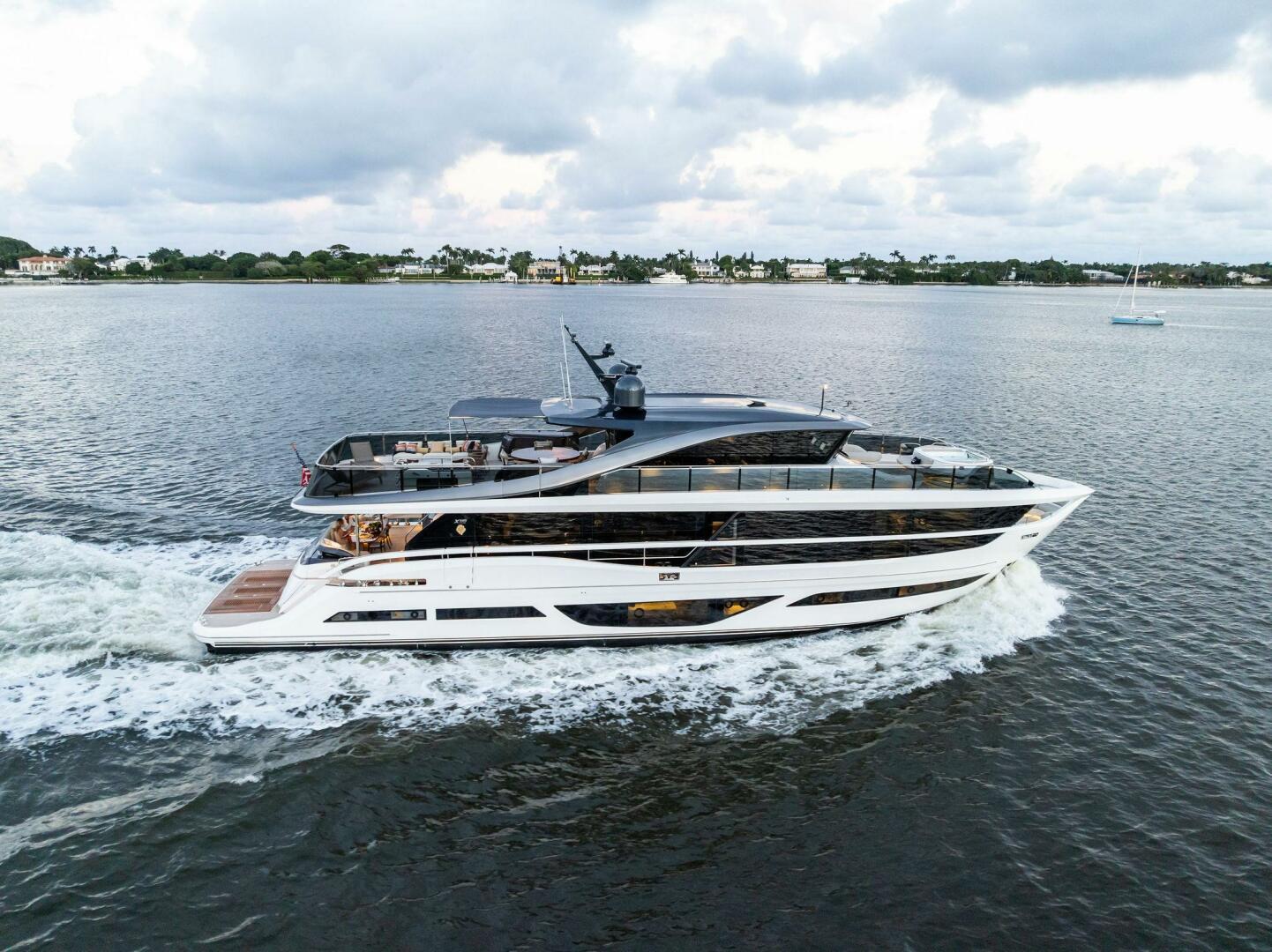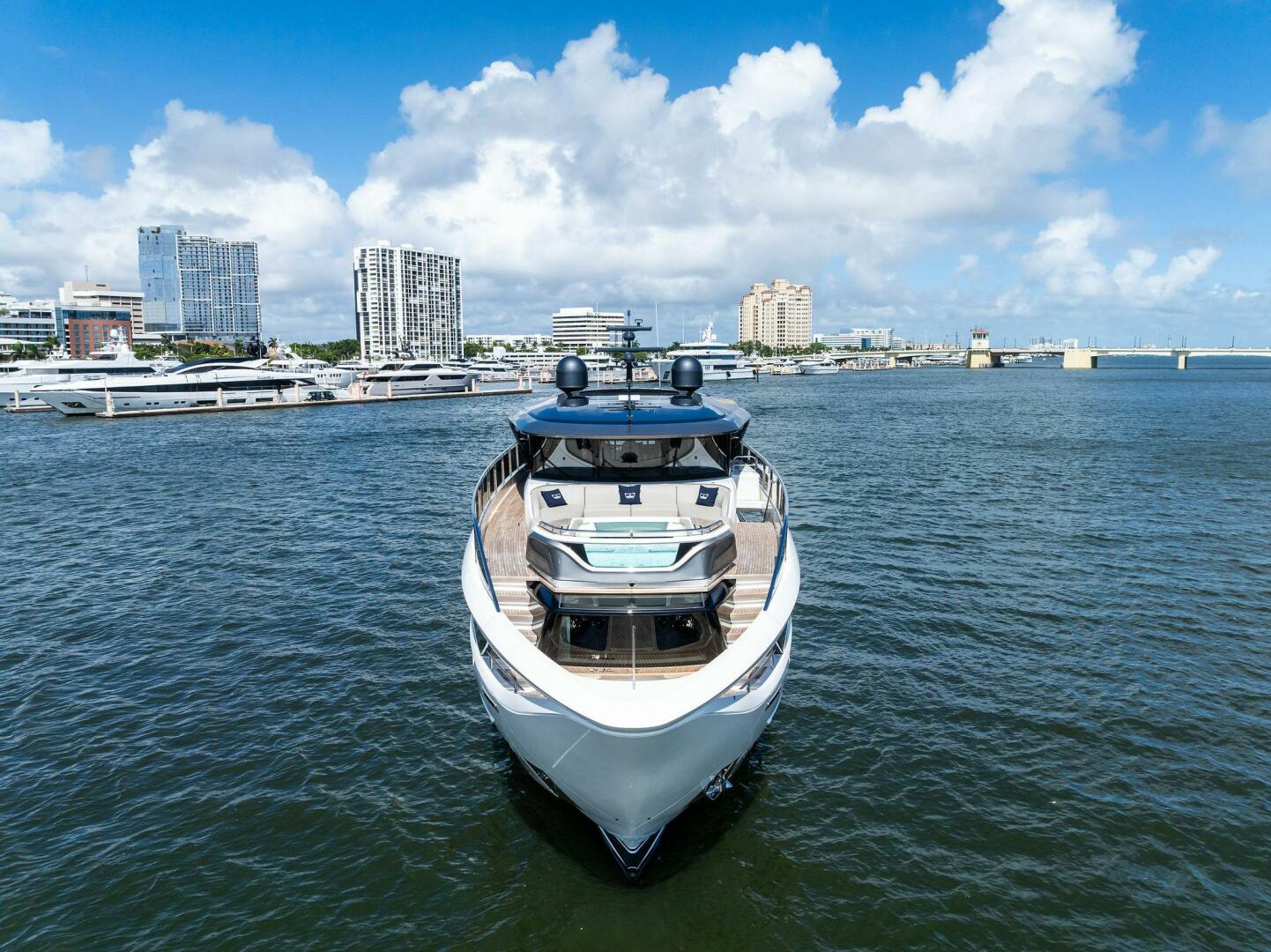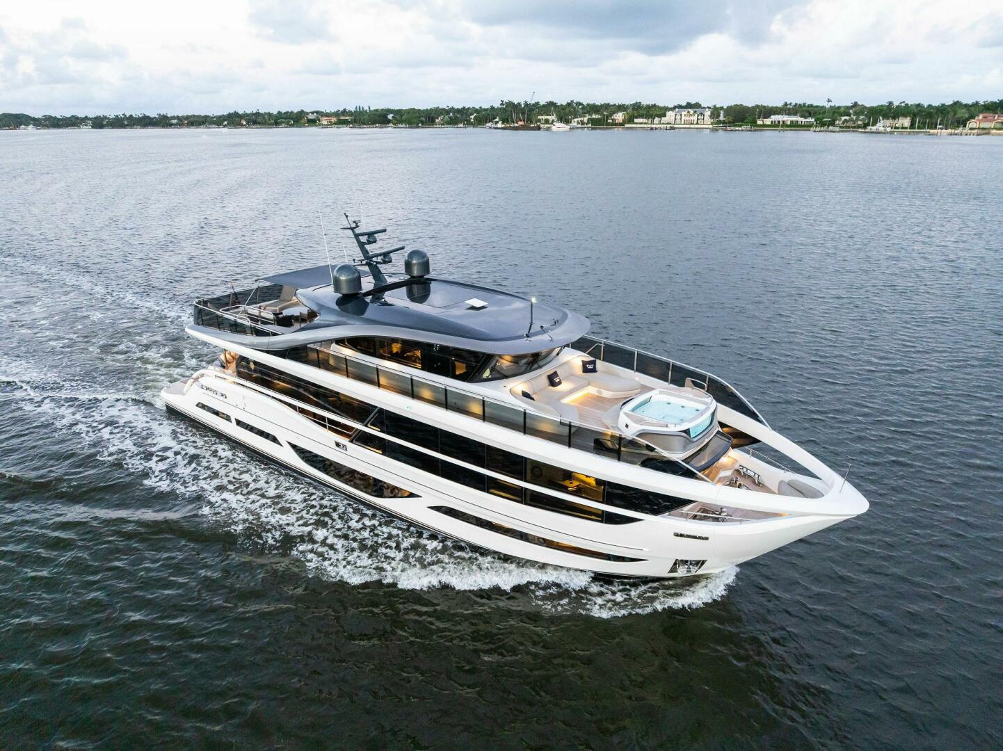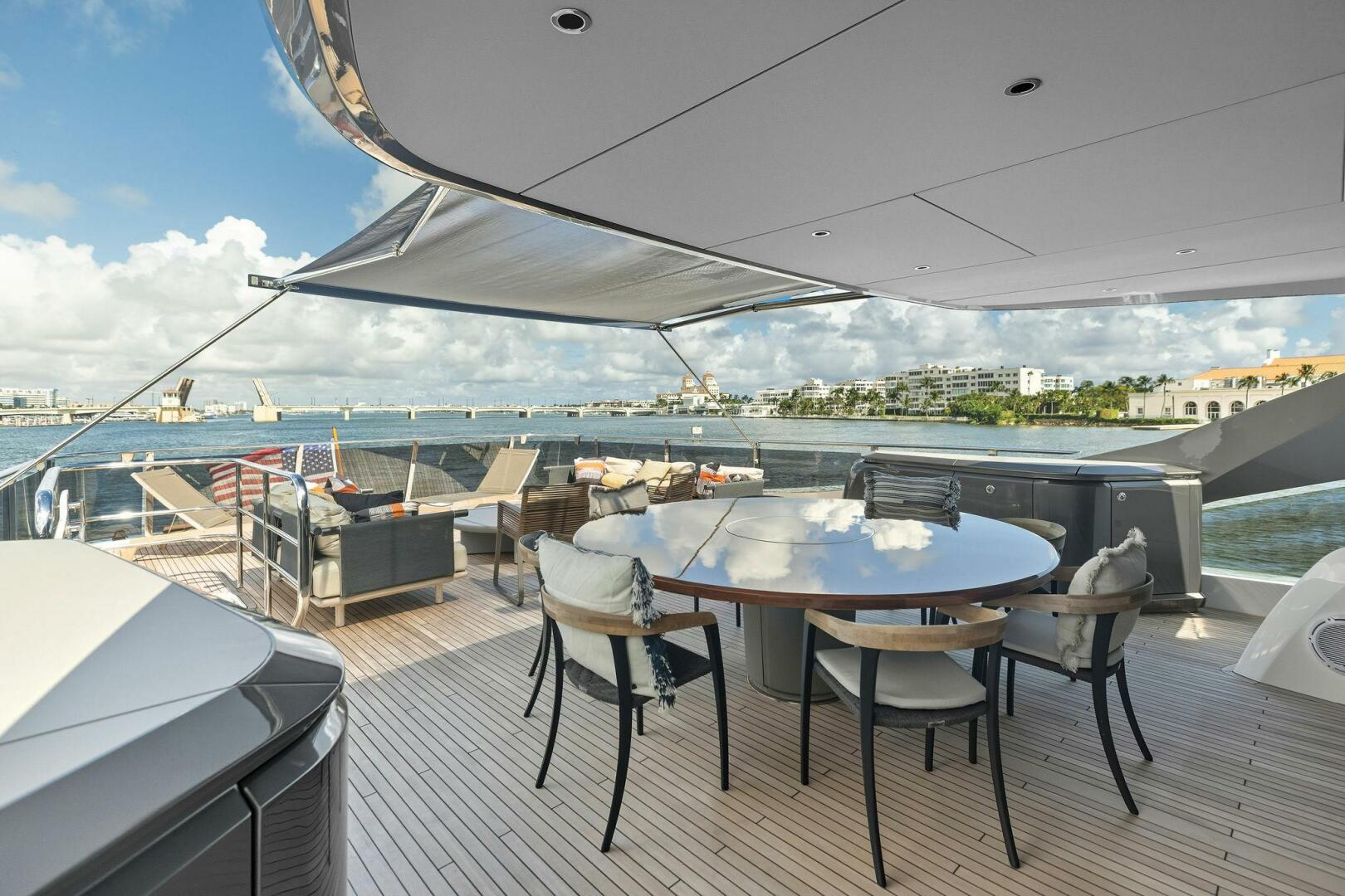 - Exterior: 43" hinge-down with Sunbright upgrade TVs (cockpit + flybridge)