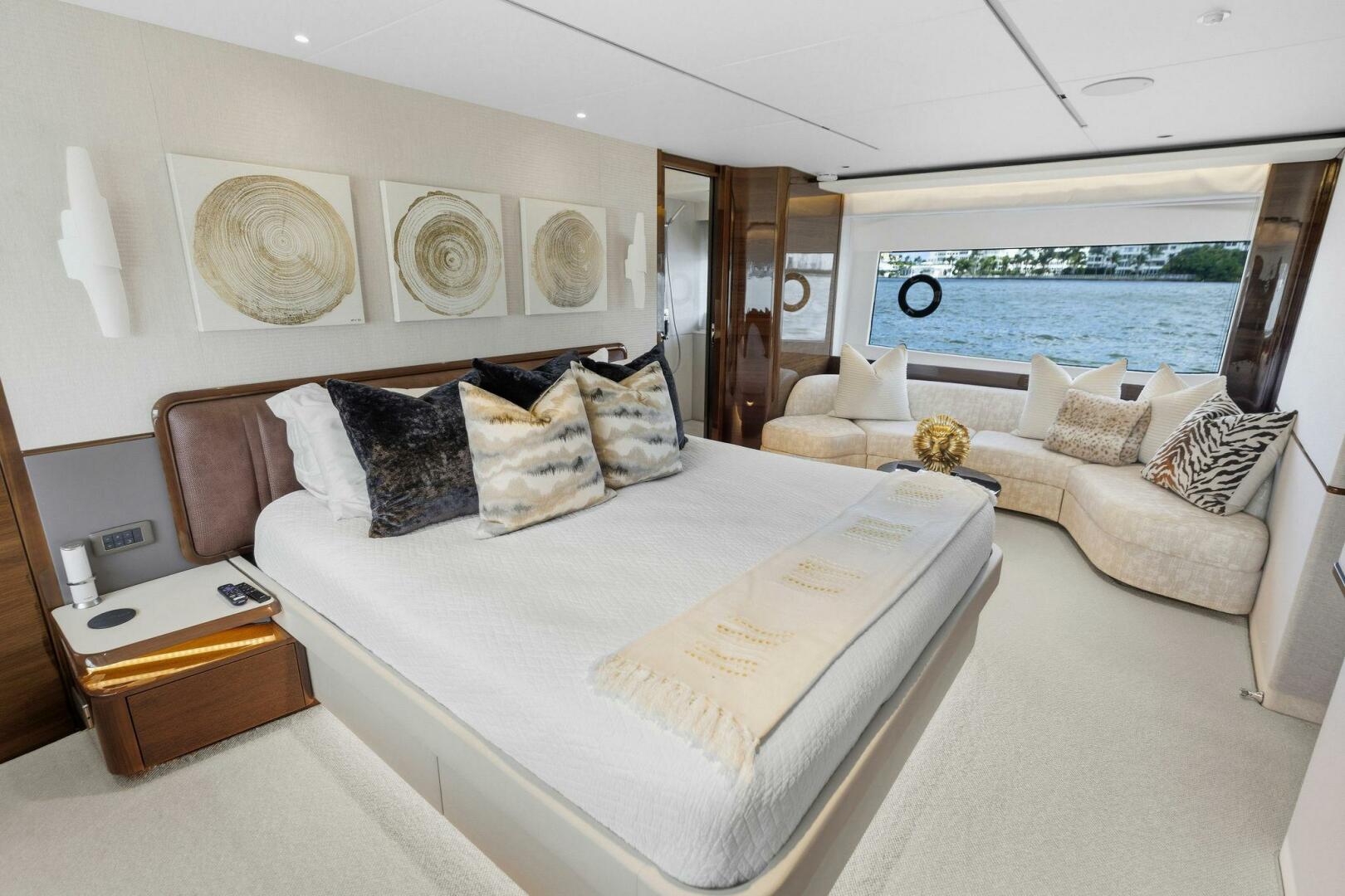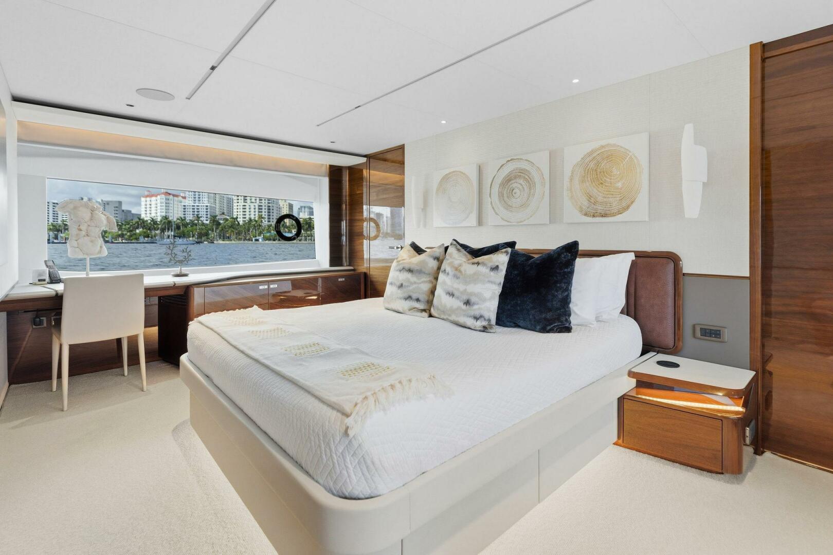 - King-size berth, lounge seating, vanity/desk, large wardrobes