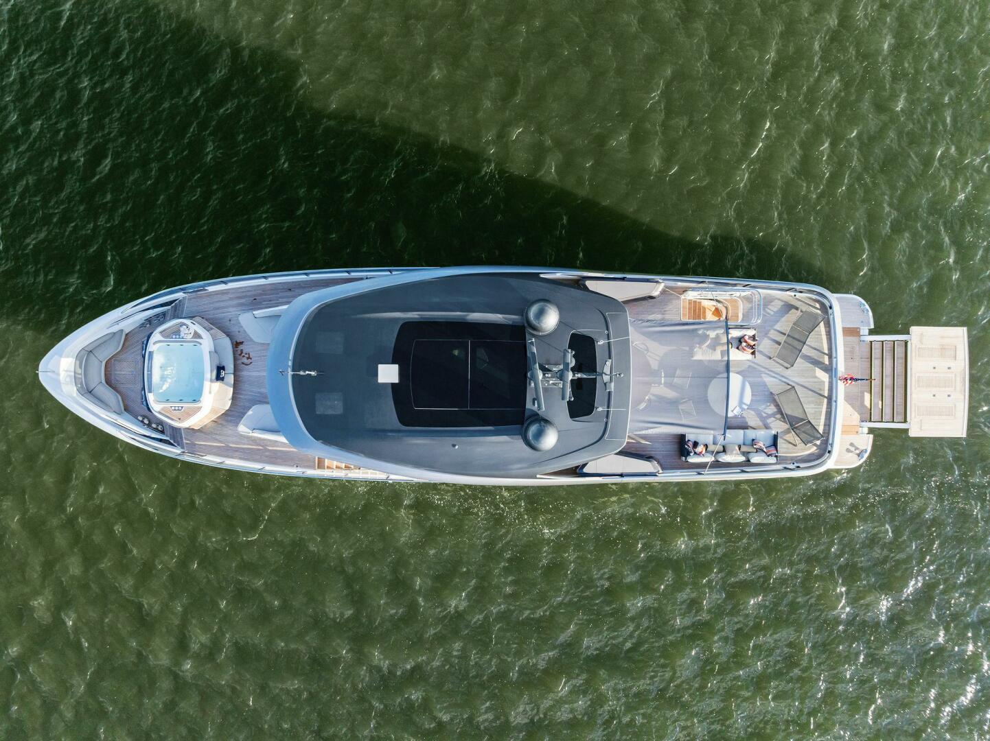 - Stairs down to swim platform and up to flybridge