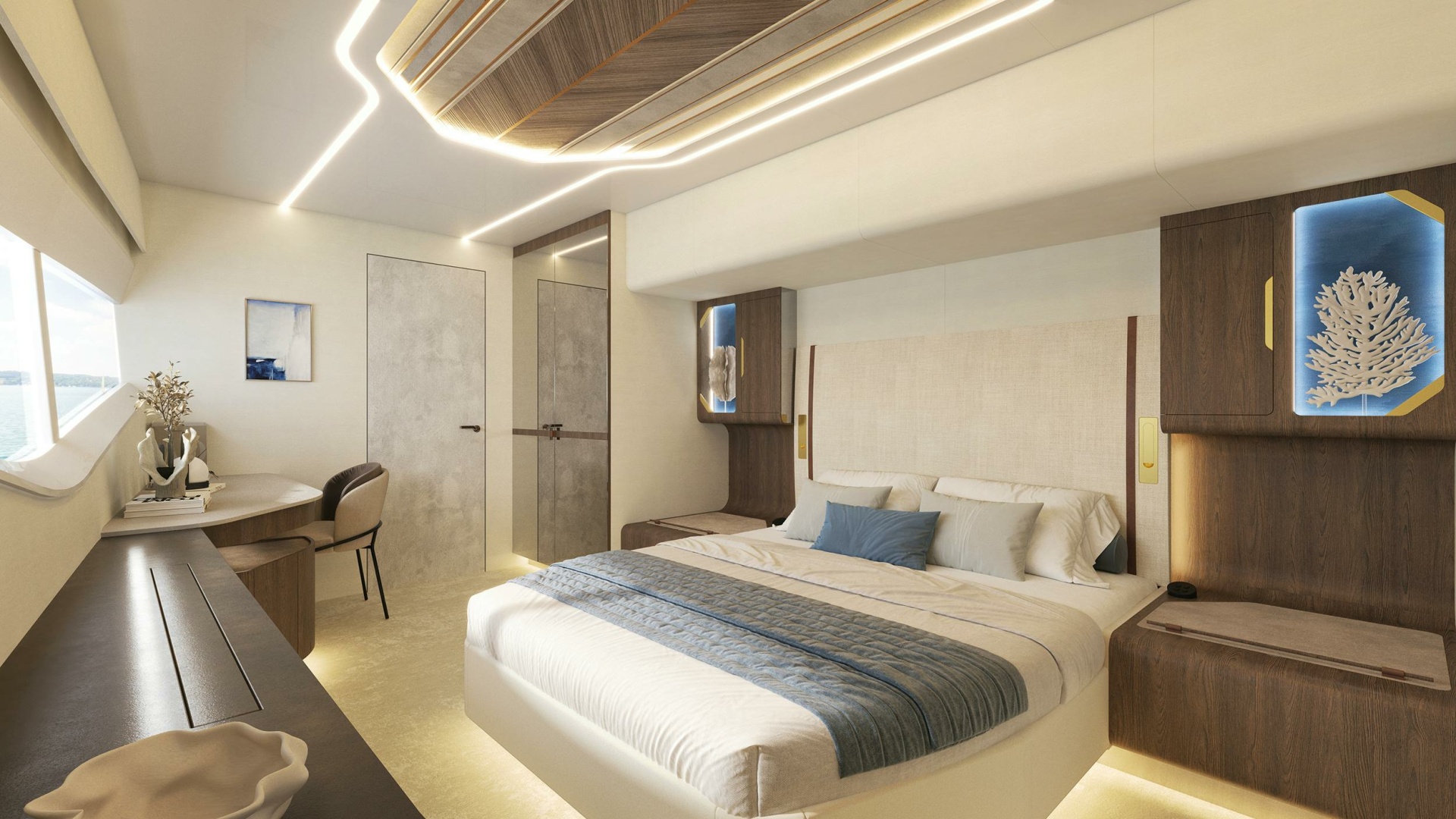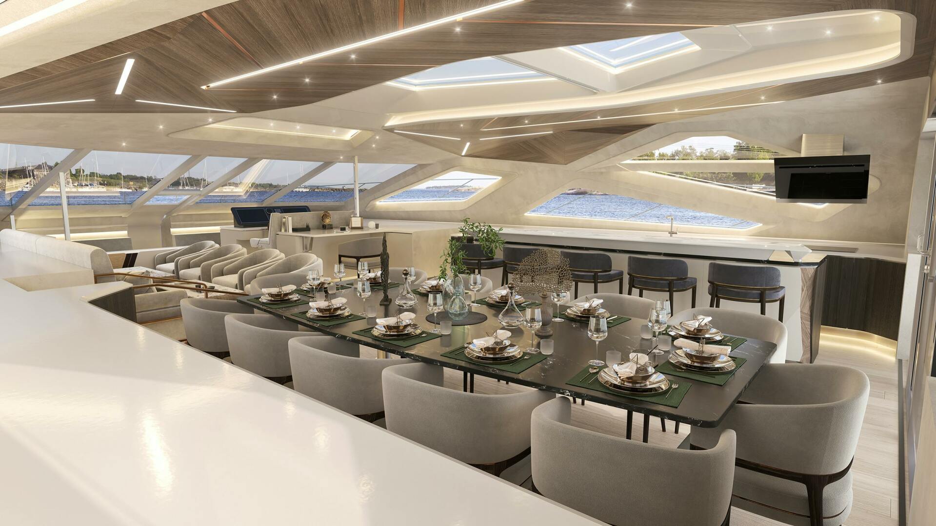 The yacht’s sleek, aerodynamic design is the creation of renowned designer Chulhun Park, known for his work on iconic superyachts like Khalilah. Constructed with a carbon-fiber hull and superstructure, LANIAKEA is engineered for lightweight durability, delivering both efficiency and high-speed performance. Powered by BMW-designed outboard waterjet engines, LANIAKEA achieves a top speed of 26 knots and a cruising speed of 12 knots.