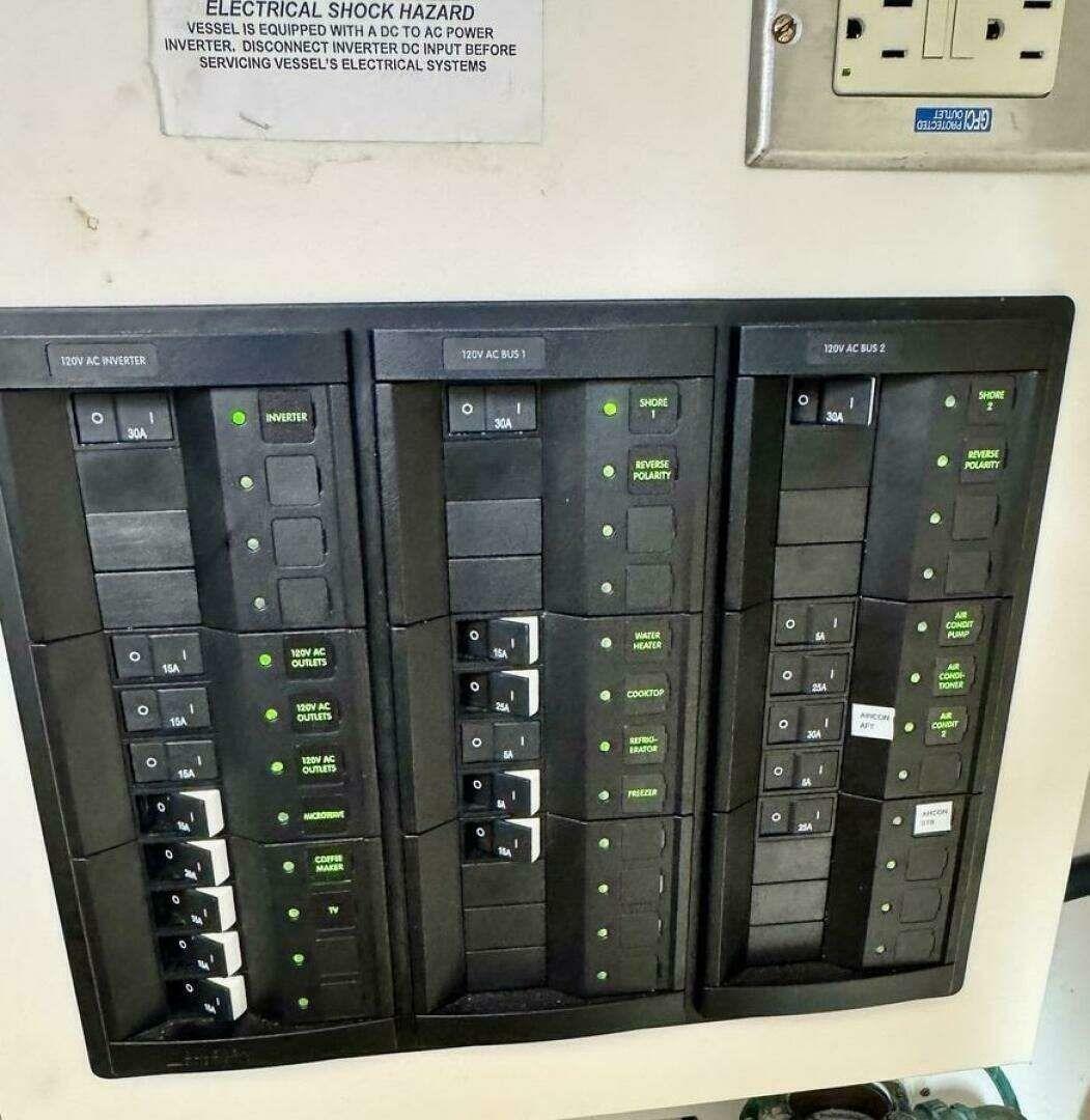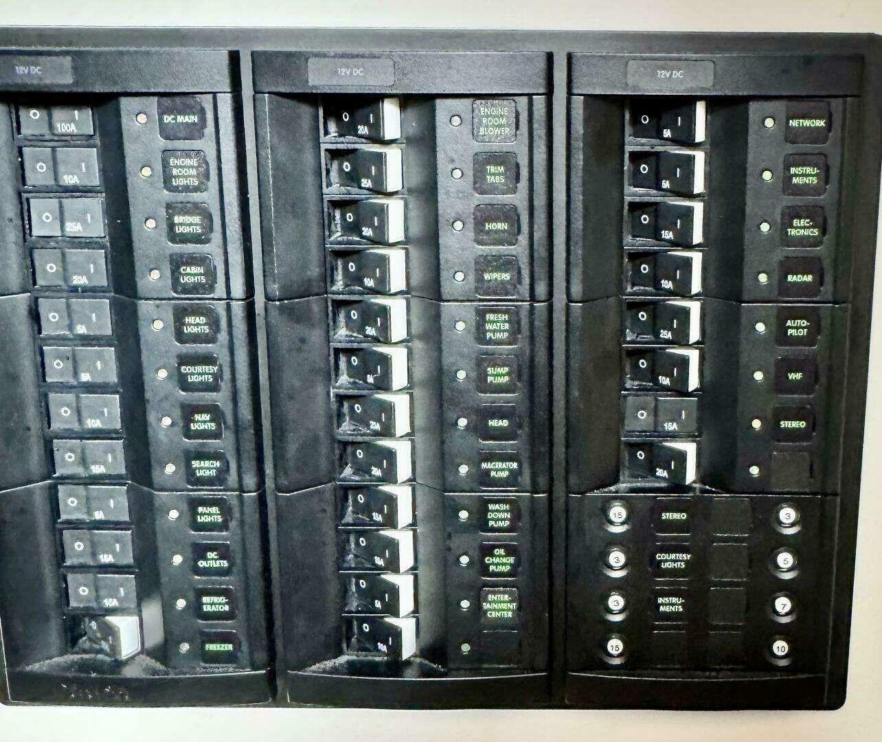 DC circuit control panel at helm