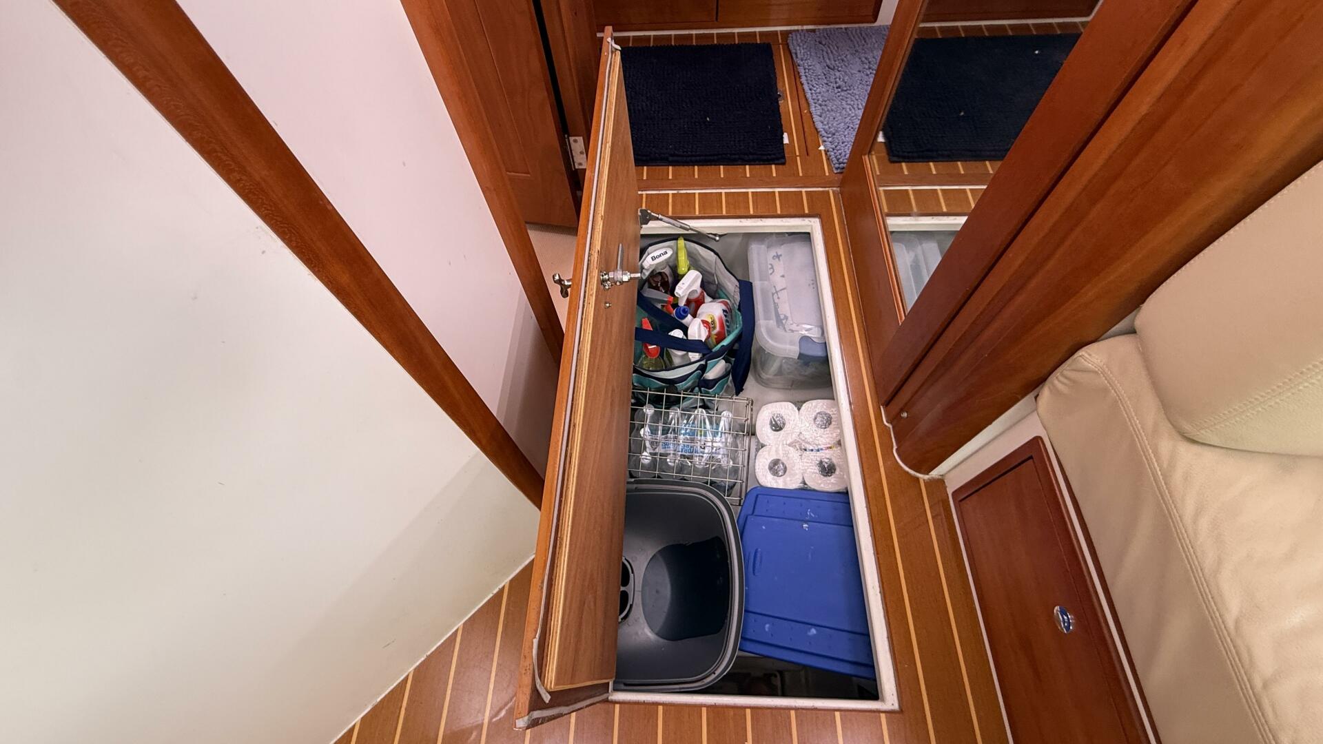 - Large Cockpit Storage Locker capable of holding deflated dinghy or life raft