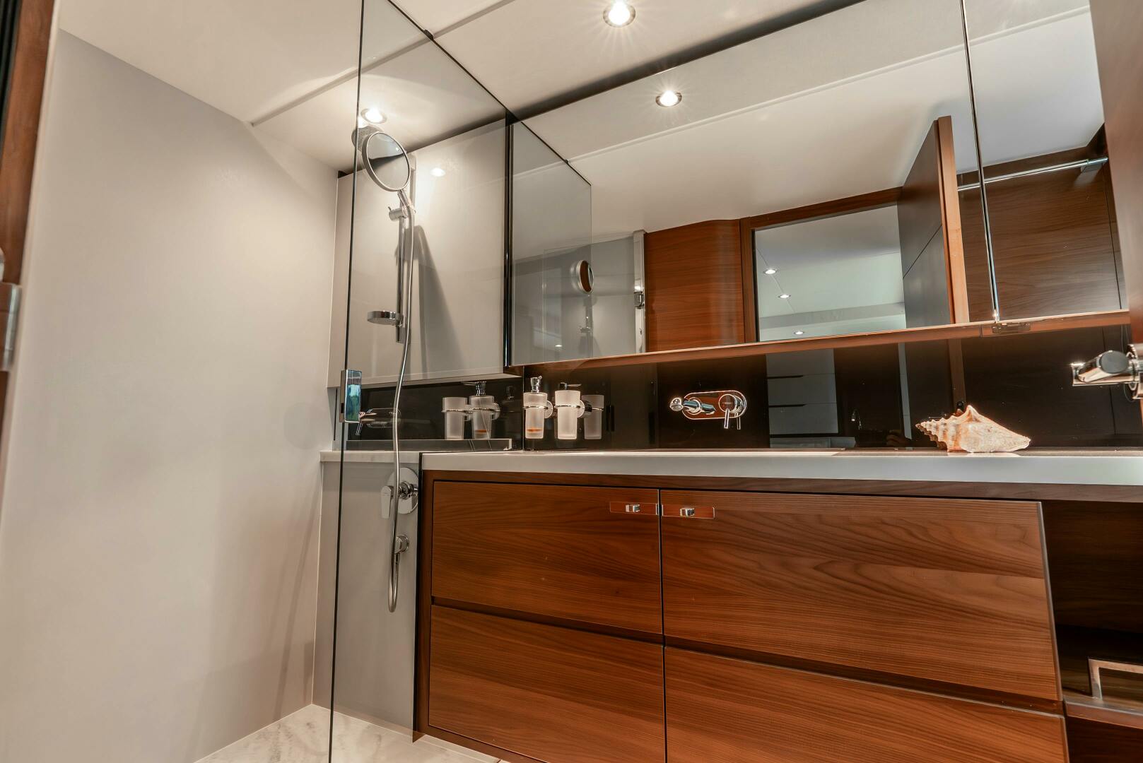 - Liquor Cabinet aft of helm station