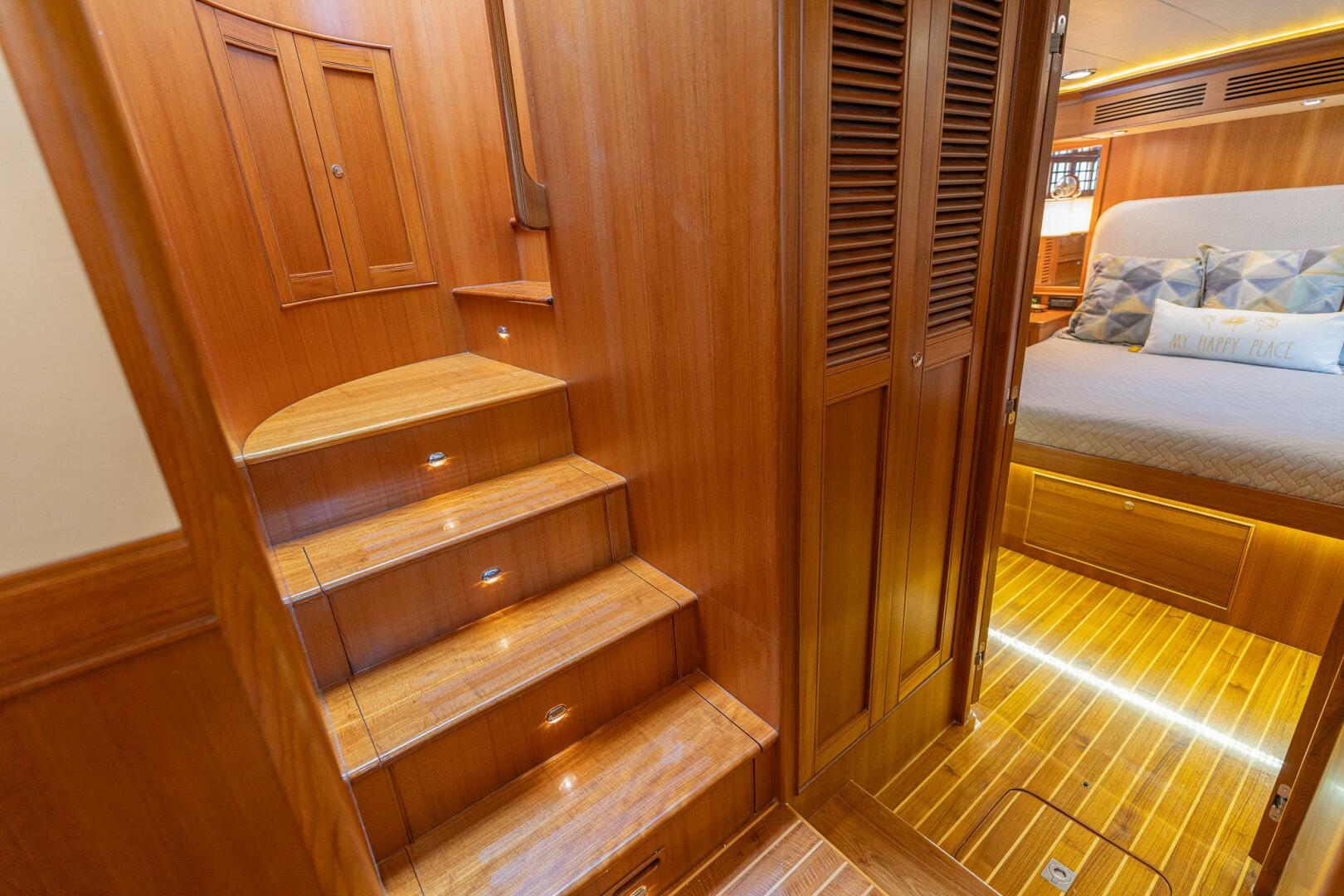 “MARGIN CALL” was built with a custom companionway forward of the master stateroom. In this space you will find a set of full size Whirpool Washer and Dryer and ample storage
