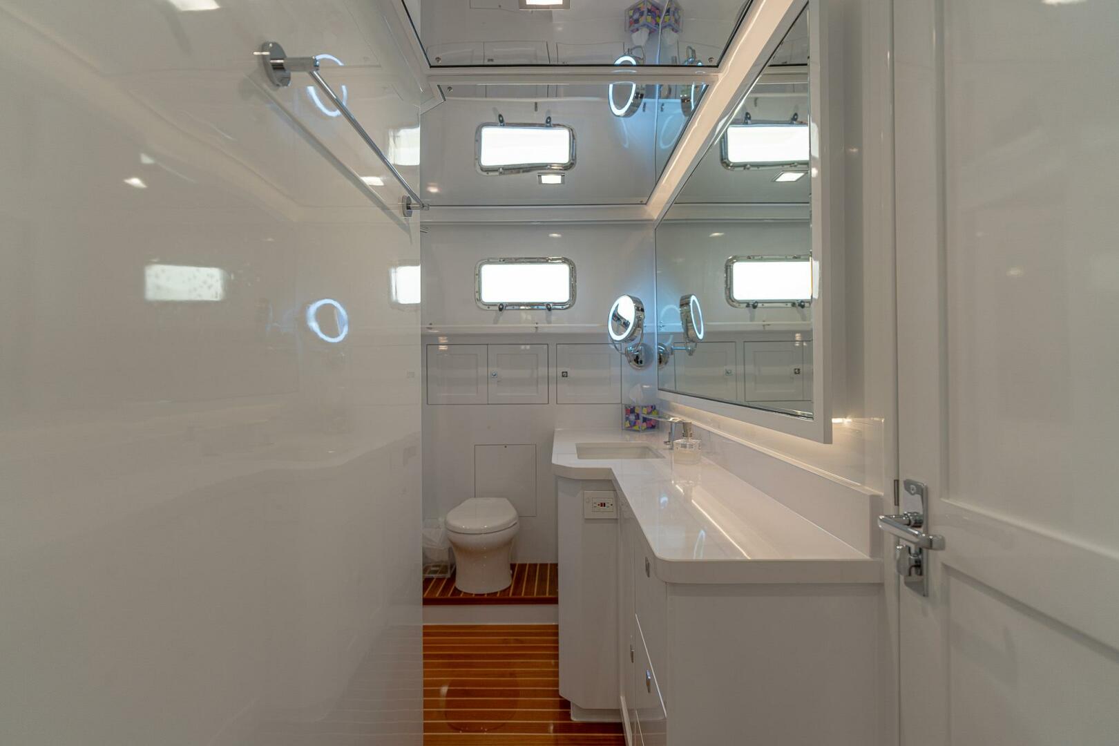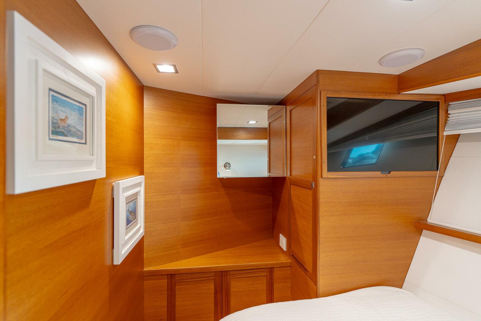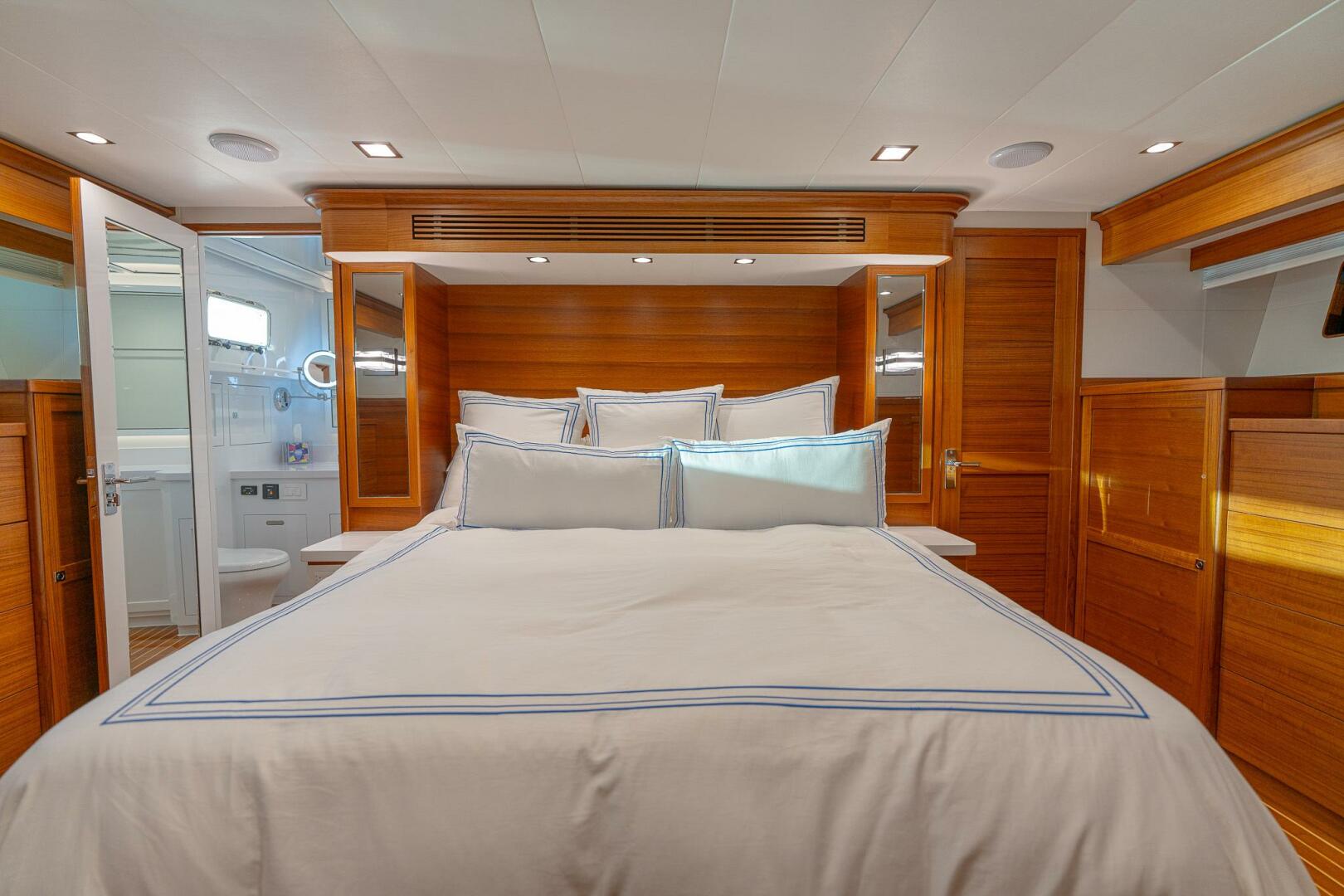 - Custom 3 stateroom layout with a full king size master bed, VIP stateroom forward, and guest stateroom to starboard.