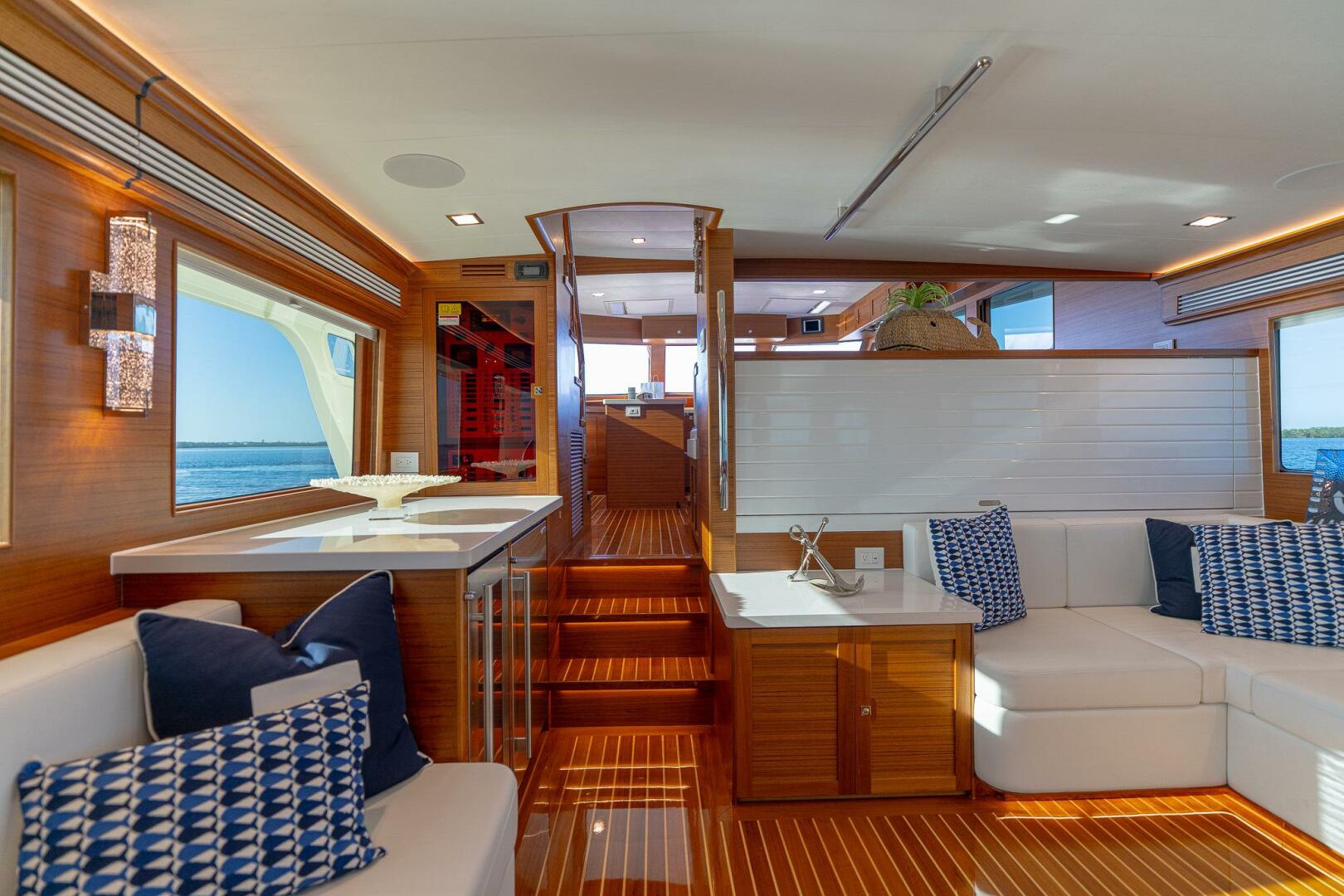 - Ample outdoor seating in cockpit, bow, and upper aft deck.