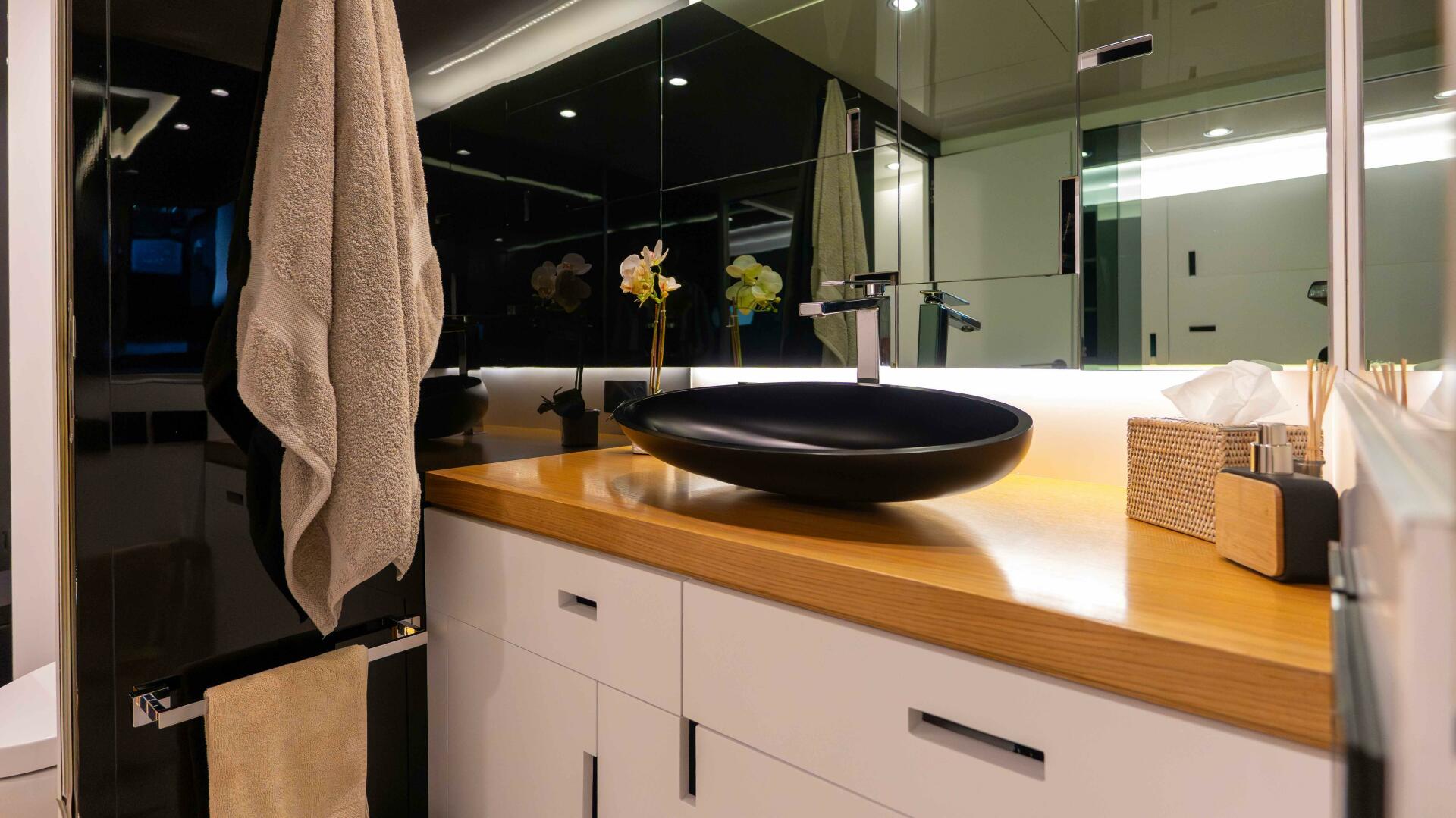 • Aft sofa with special locker for 3 Seabobs and scuba diving equipment