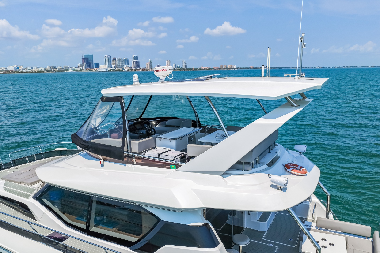 - Lifejacket and safety gear storage under flybridge seats