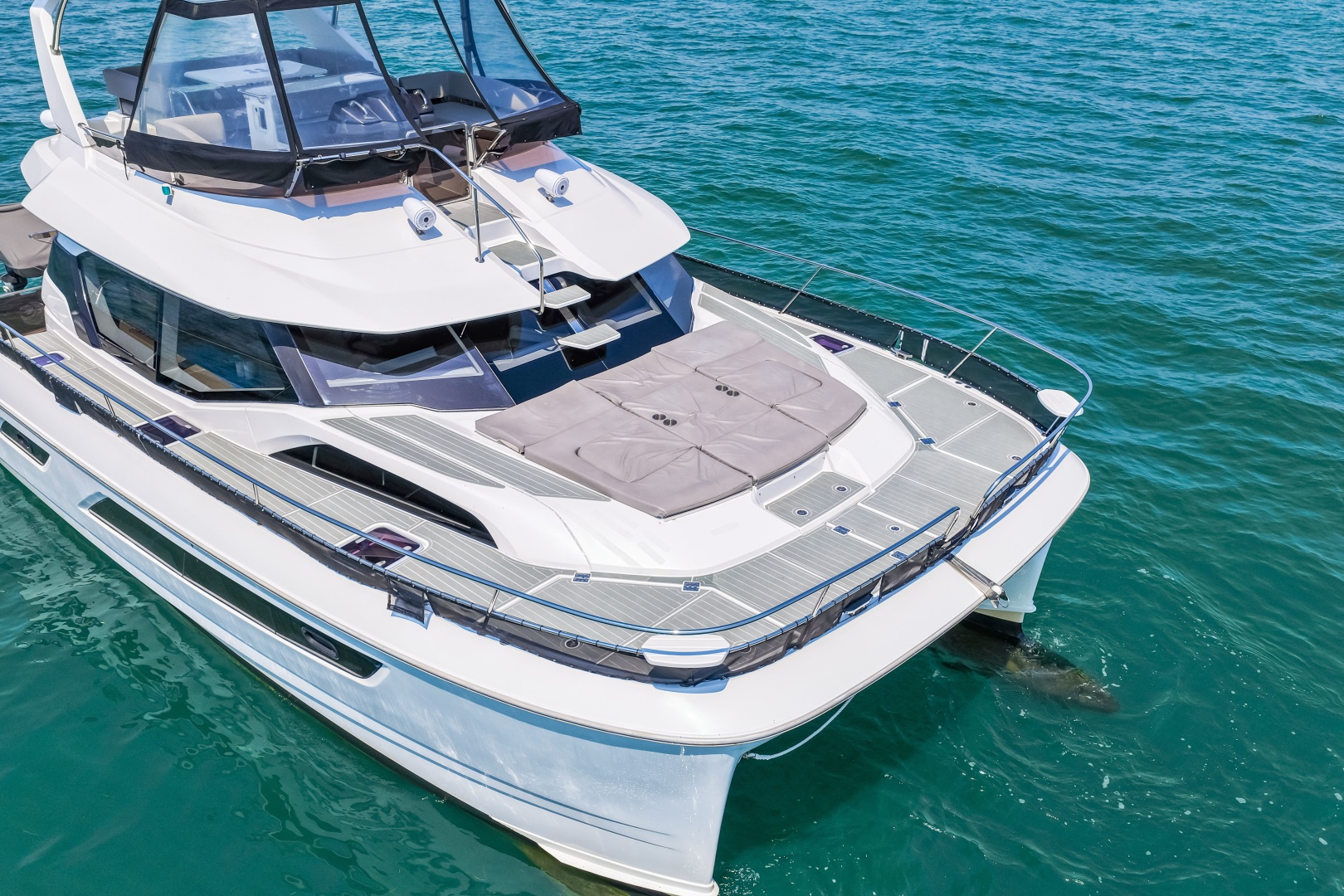 - Access to flybridge from aft stairway and forward bow steps