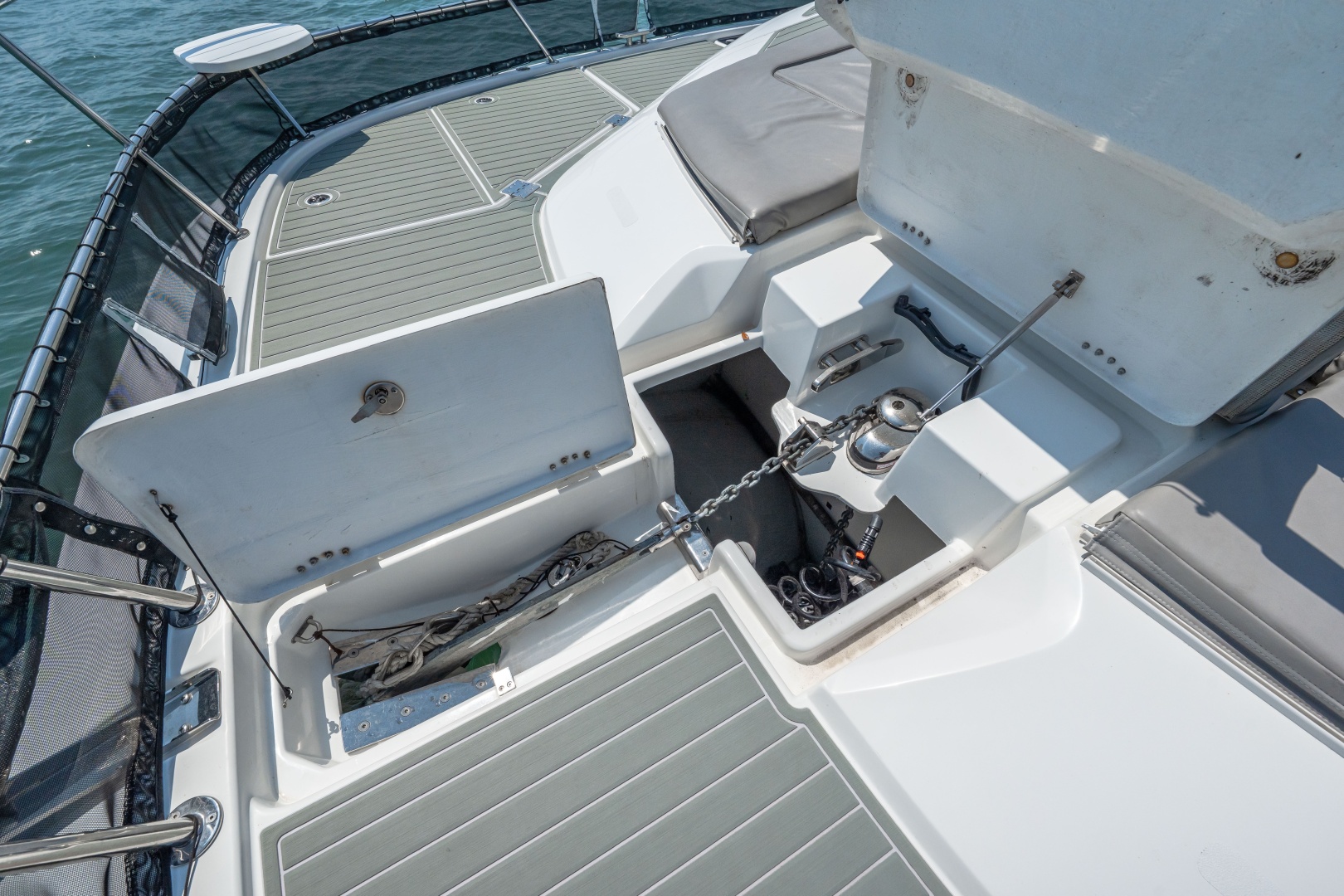 - Large starboard and port bow lockers with easy lift gas hinges for fender or gear storage