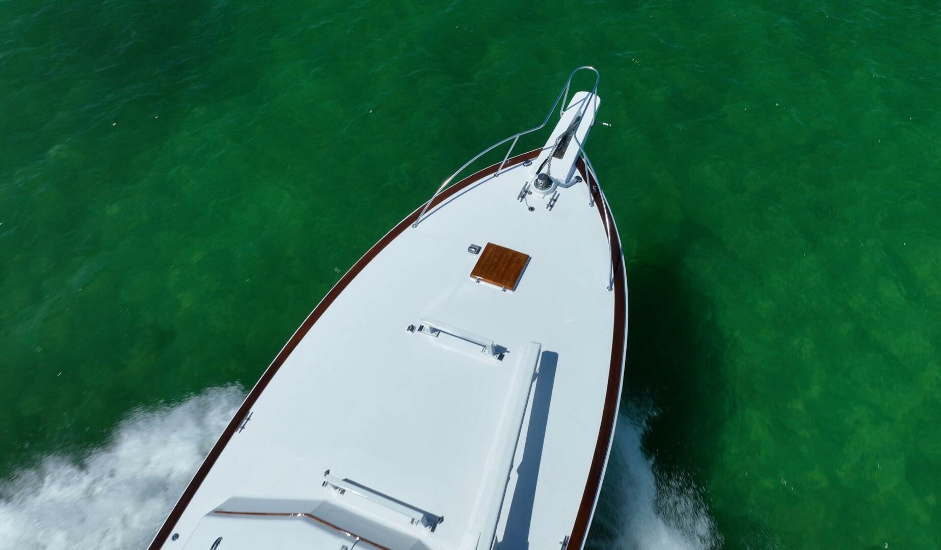 During a fishing tournament in the Turks & Caicos in the 1990s, Marlin Magazine’s Ricard Gibson documented an incident where a large blue marlin collided with the starboard side below the gunwale, leaving its spike embedded in the mahogany. The spike remains visible from within the engine room to this day.