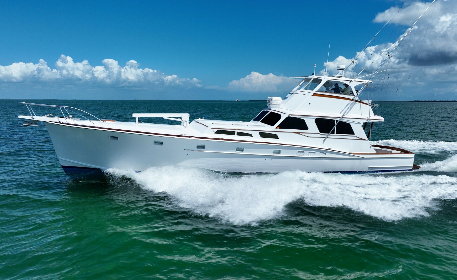 E. Bronson Ingram II, a billionaire and investor, commissioned his new boat from Whiticar Boat Works, which took 2.5 years to build. Designed and built by Curt Whiticar, this Shearwater custom sport fishing boat has been featured in magazines for its distinguished lineage, beauty, and performance.