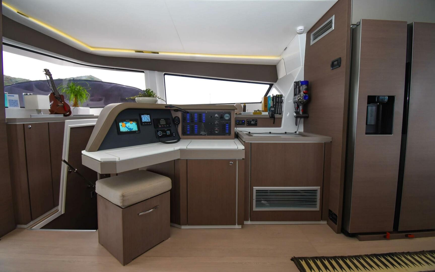 Swinging opening window between the salon and the forward cockpit