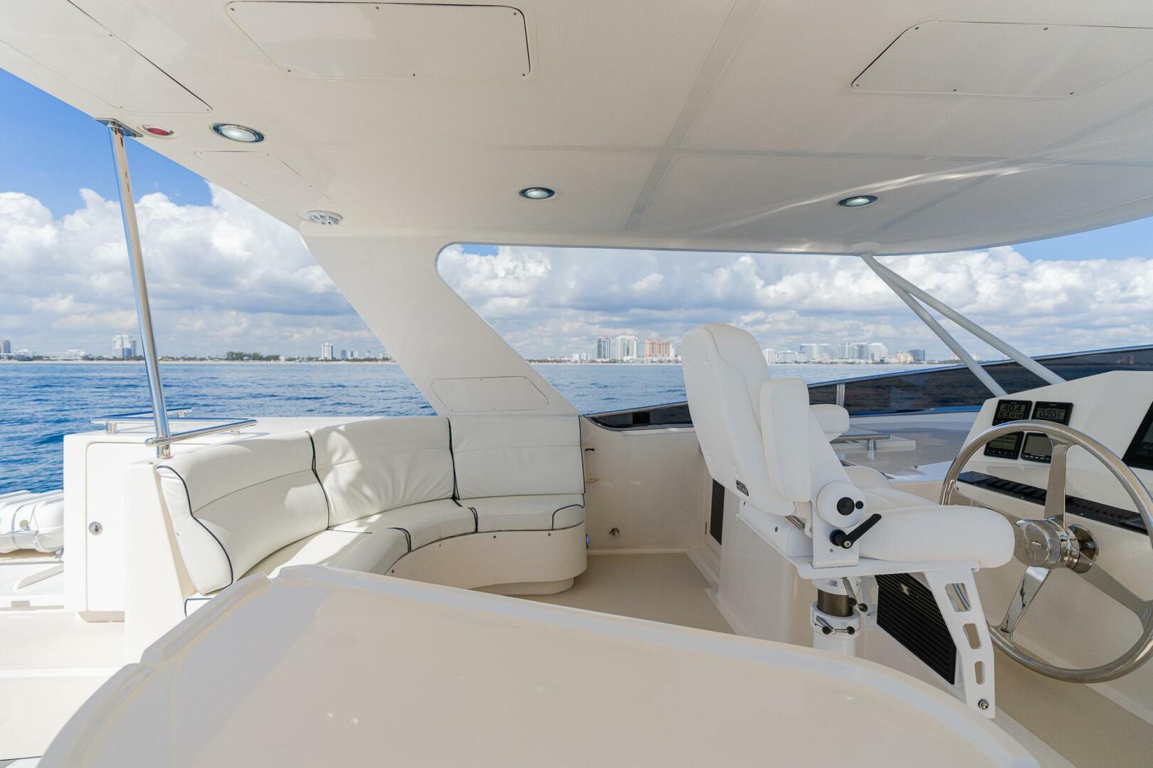 In addition, this magnificent yacht is well equipped with the cutting-edge Yacht Controller making docking and mooring a breeze! Even if you come from a smaller sized boat with a little practice, you will find yourself running this boat easily from the Pilothouse or docking with ease while walking to the side decks of the Flybridge and using the Yacht Controller to easily detect how close you are to the dock and pilings.