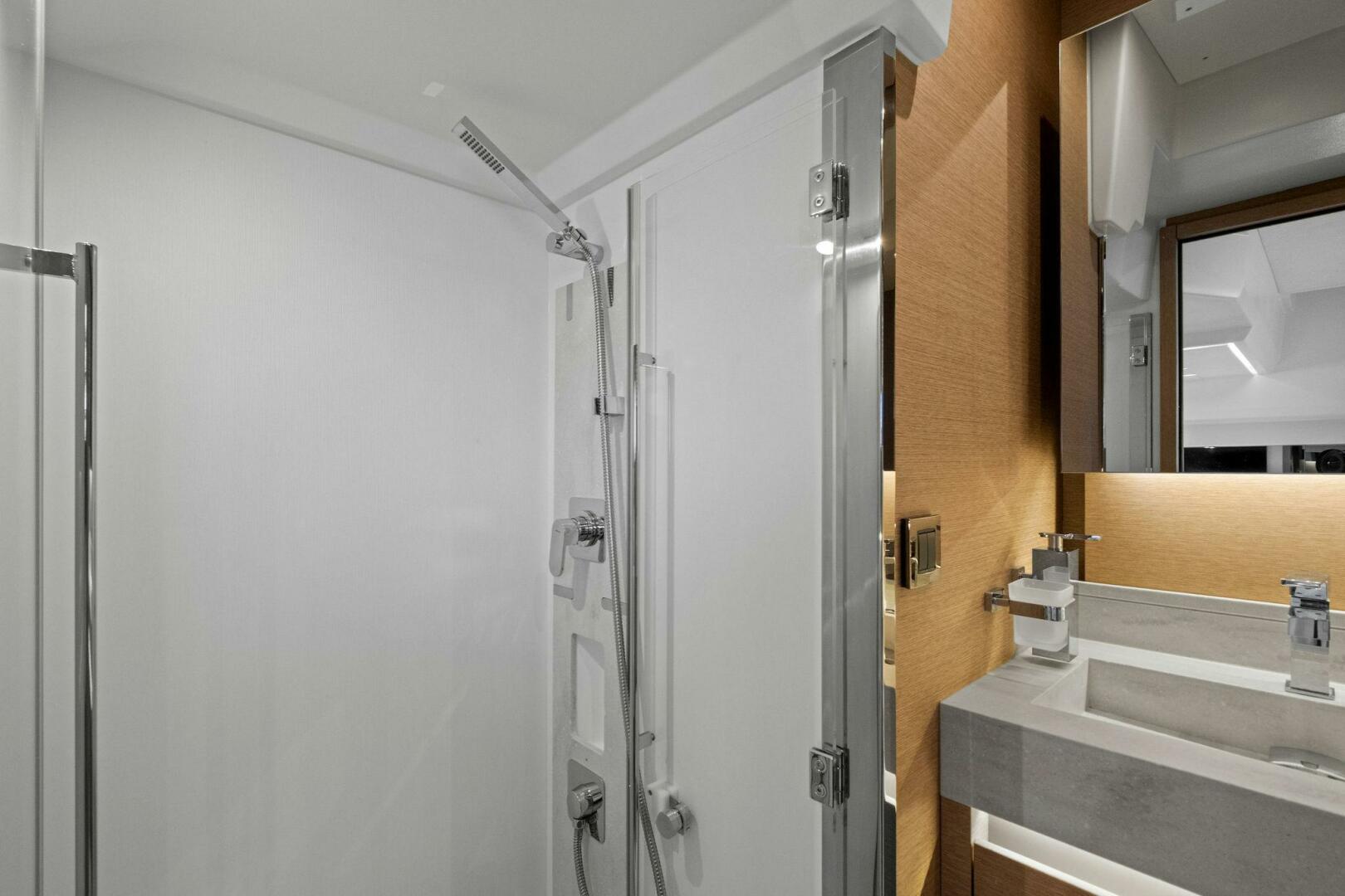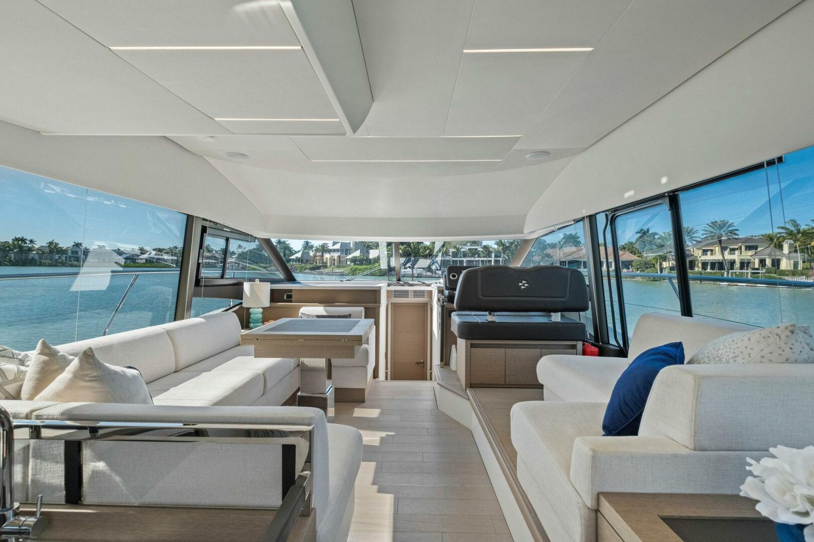 Forward Sun Pad Mattress with Adjustable Sun Loungers, Teak Cockpit Table with Folding Leaves, Maindeck Protective Covers: Foredeck Sunpads, Cockpit Seating, and Cockpit Table Covers, Stainless Steel Bopw Protection, Electric Trim Tabs, Opening Window to Port, Freshwater/Saltwater Wash-Down System in Cockpit and Anchor Locker with Dedicated Pump, Dockwater Inlet, Glendinning Cable Management System.