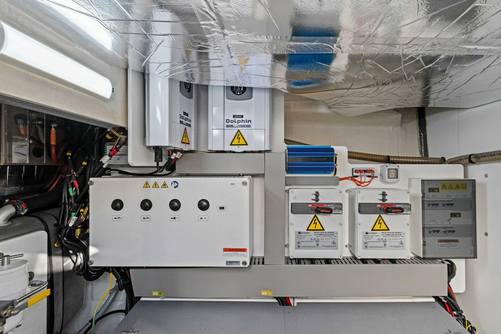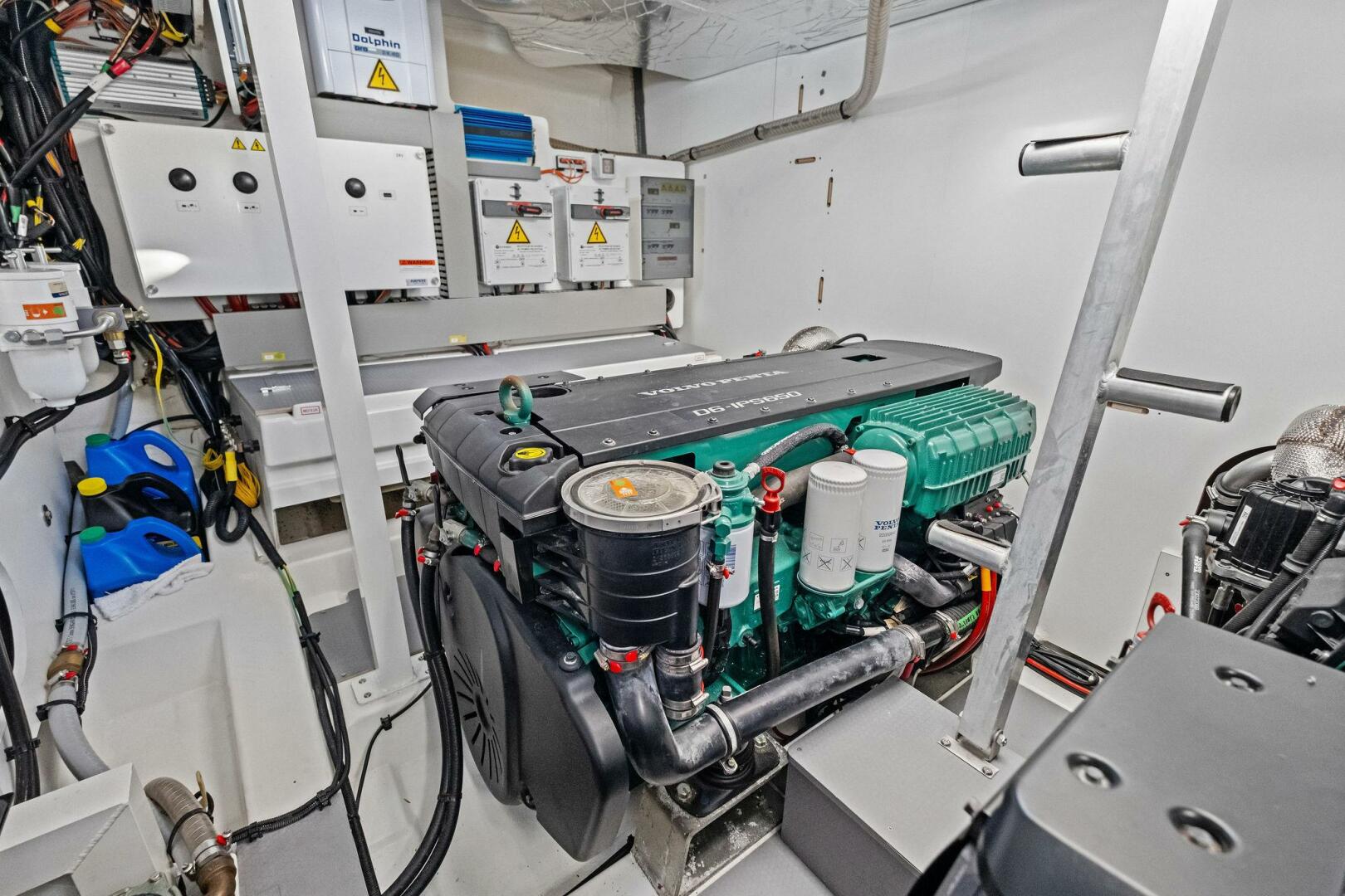 2 x Axiom 12" Multifunction GPS Screen, 2 x Axiom 12" on Flybridge, Volvo Engines Interface, Gyro EV-2 Autopilot for IPS, Ray91 VHF Dual Station with AIS Receiver, and Quantum Radar.