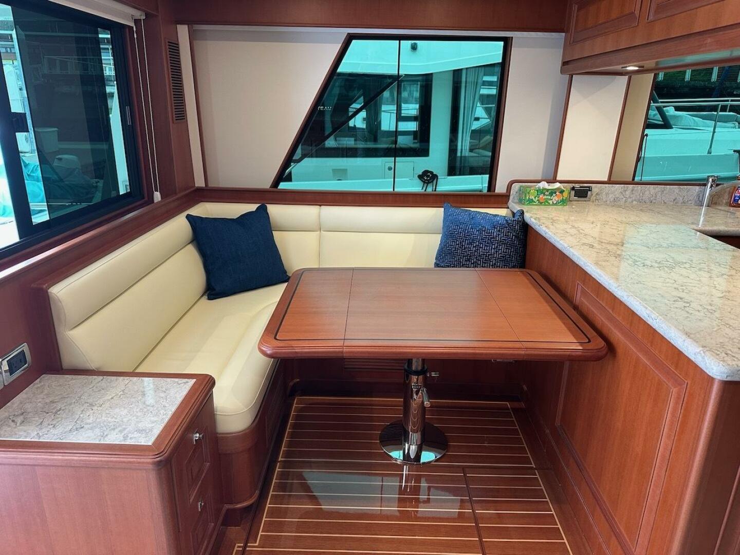 - Elevated platforms for the helm seating and settee