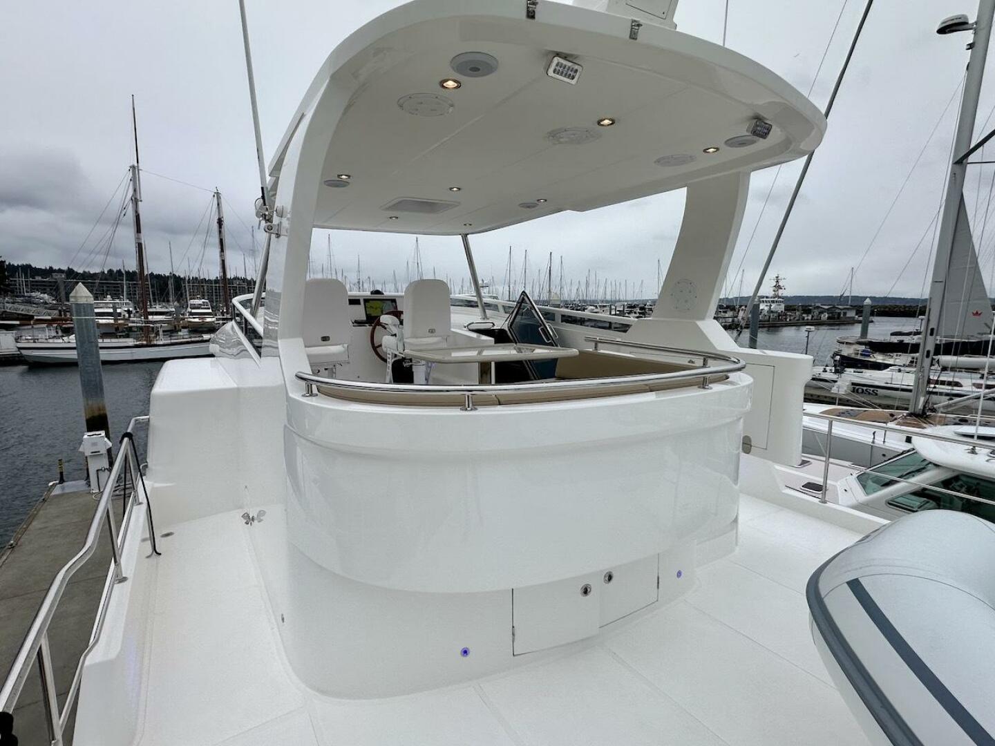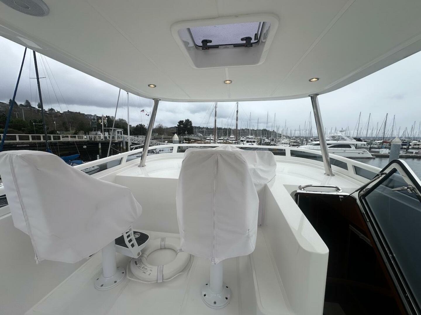 - Fiberglass Roof - Covers front half of the flybridge, can add enclosure panels
