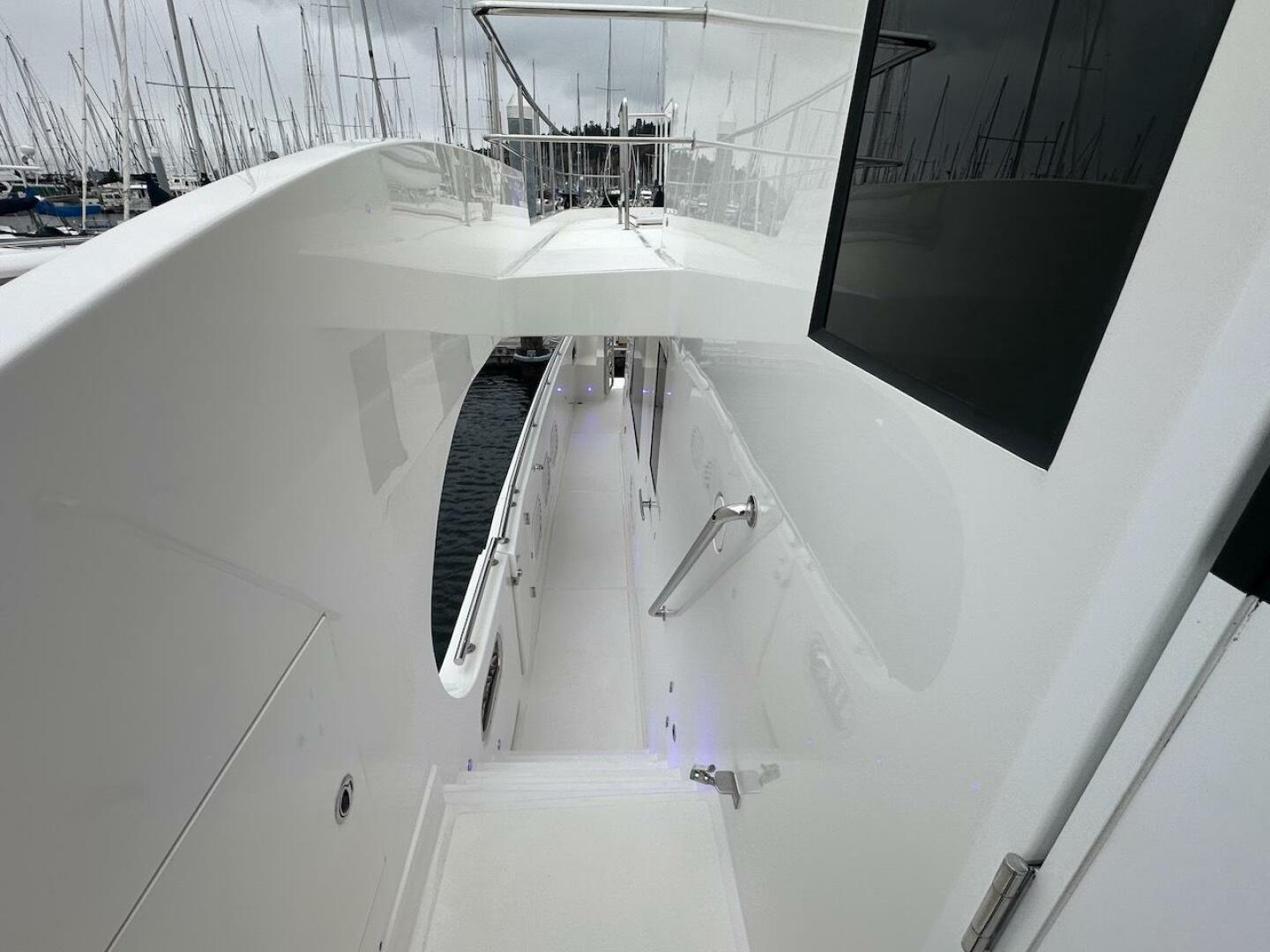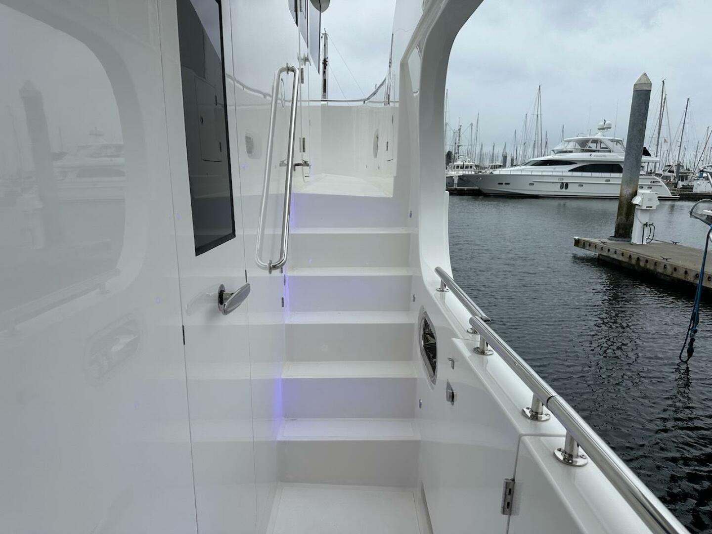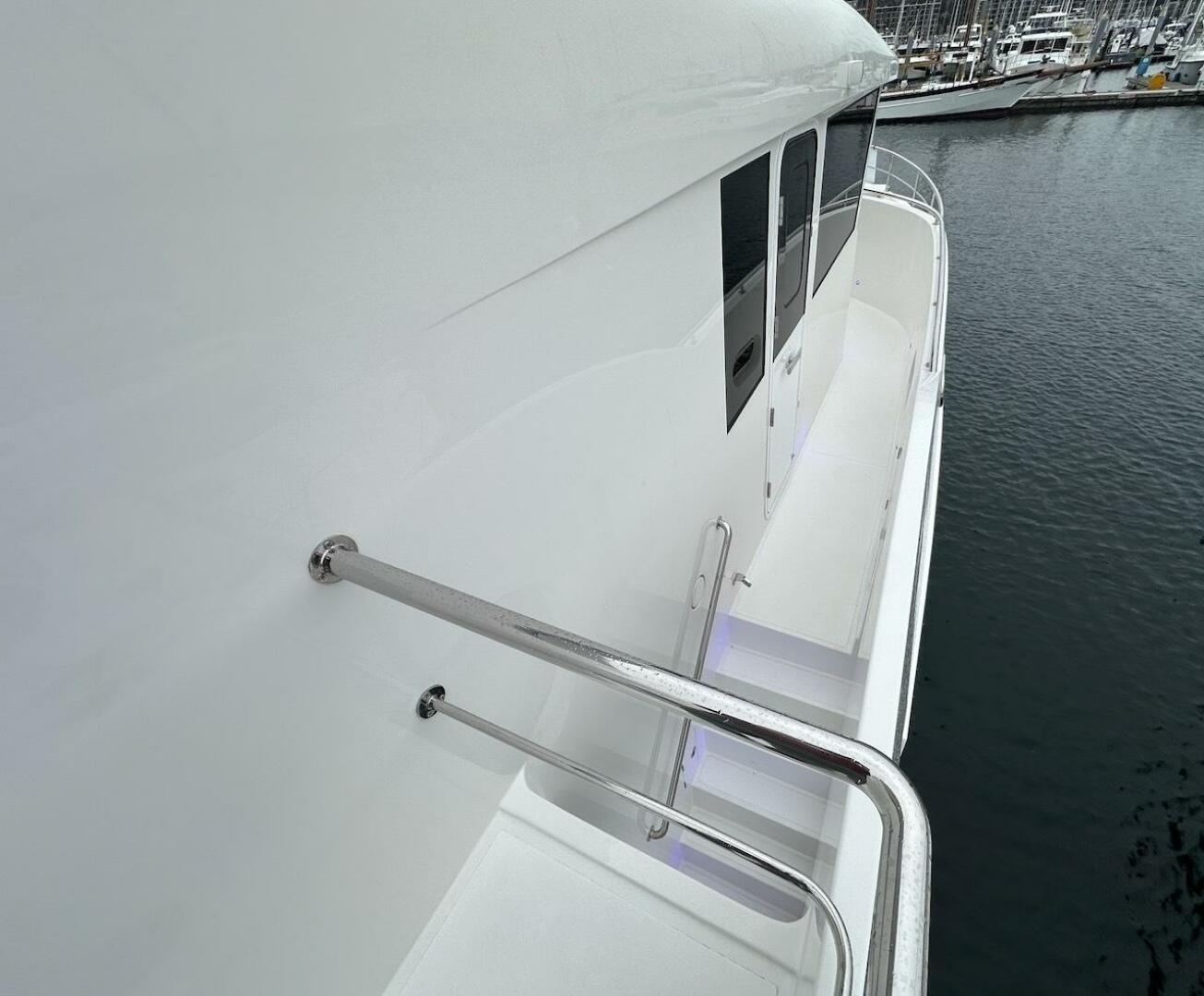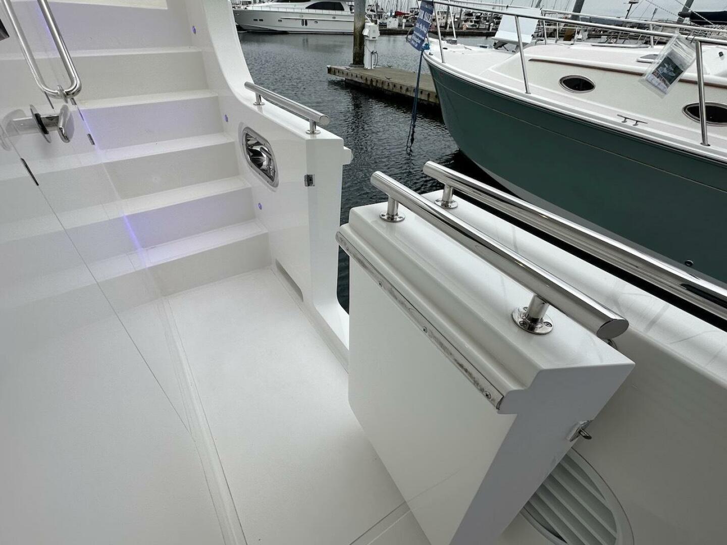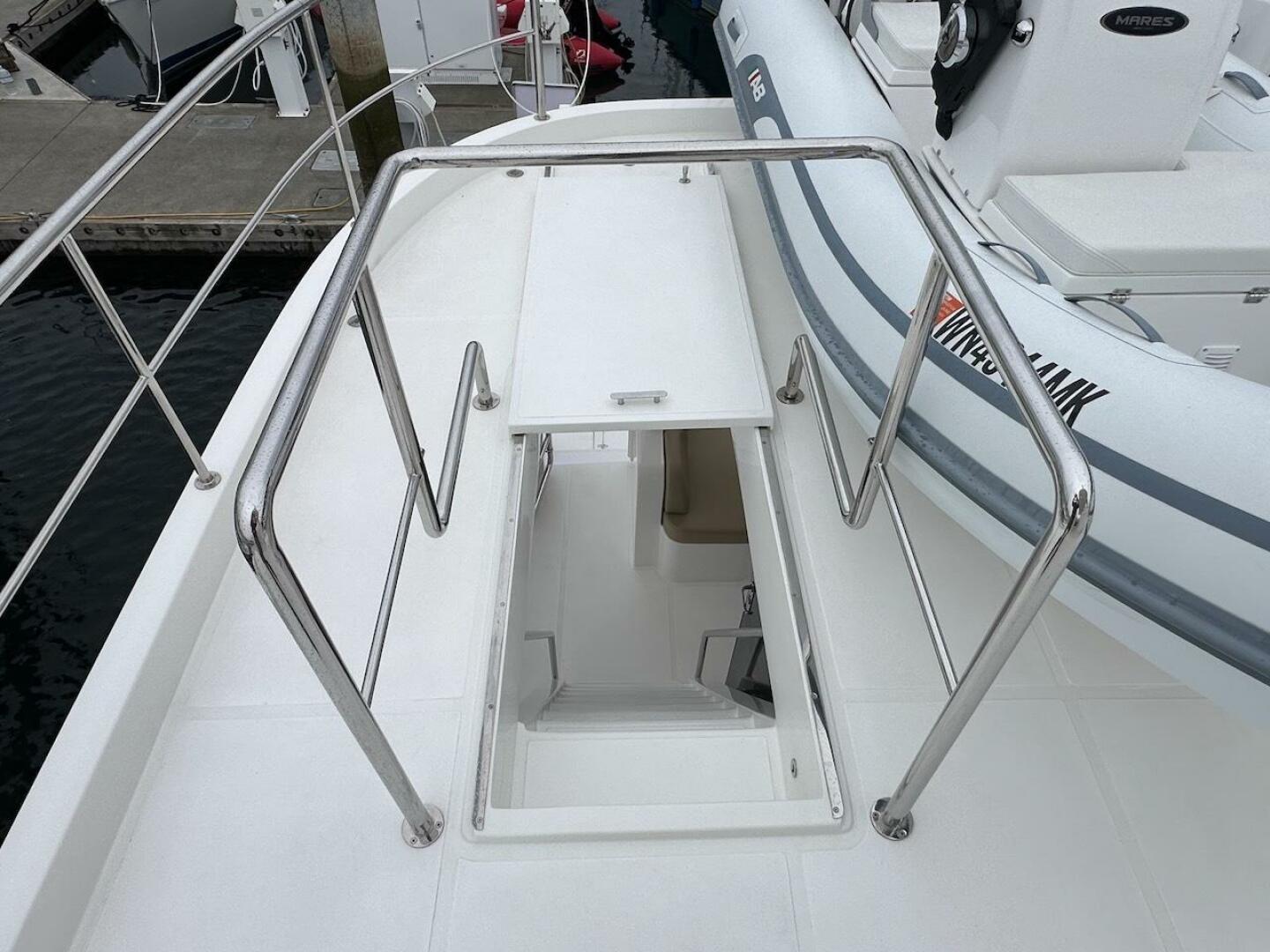 - Deck rails of 1.5" stainless steel with 1" Stanchions on boat deck and foredeck