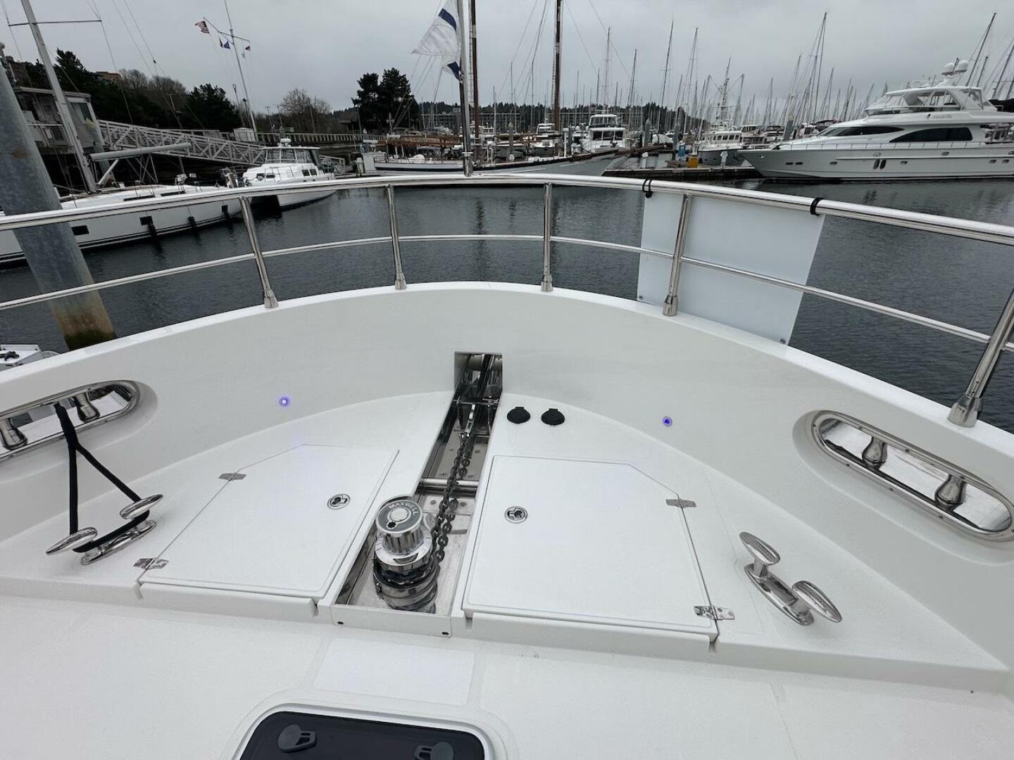 - Maxwell RC2500 vertical windlass with up/down switch at bow and pilothouse & flybridge