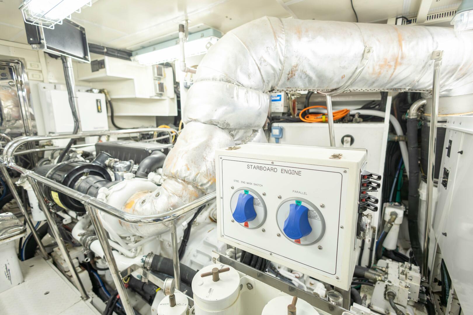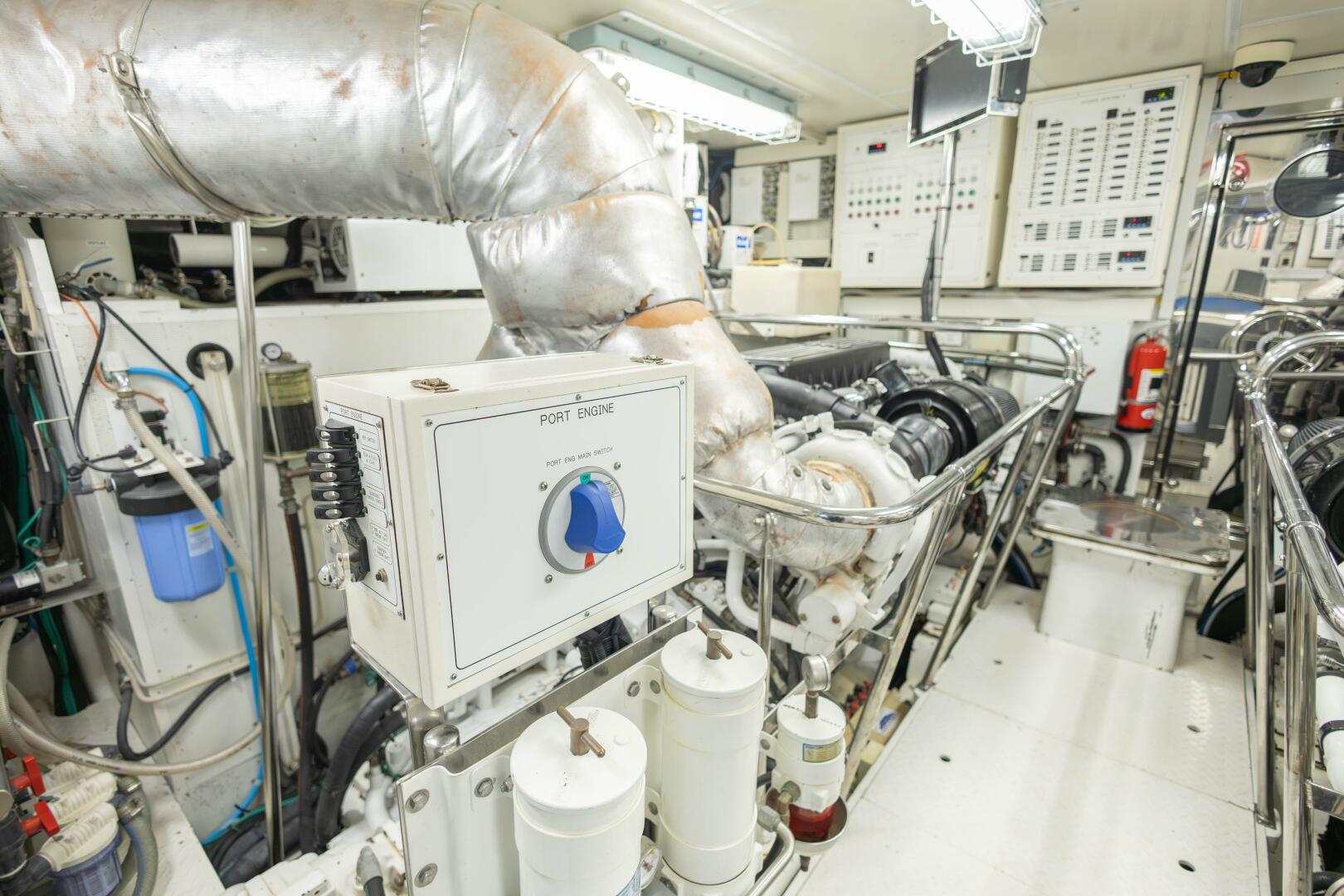 Double stabilizer & bow thruster backup pump on back of prt & stb engine