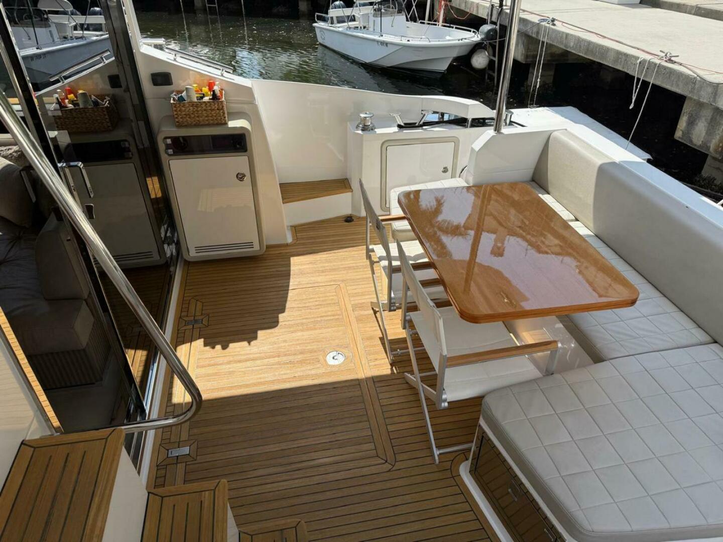 - Teak on platform, teak cockpit, side decks and fly bridge