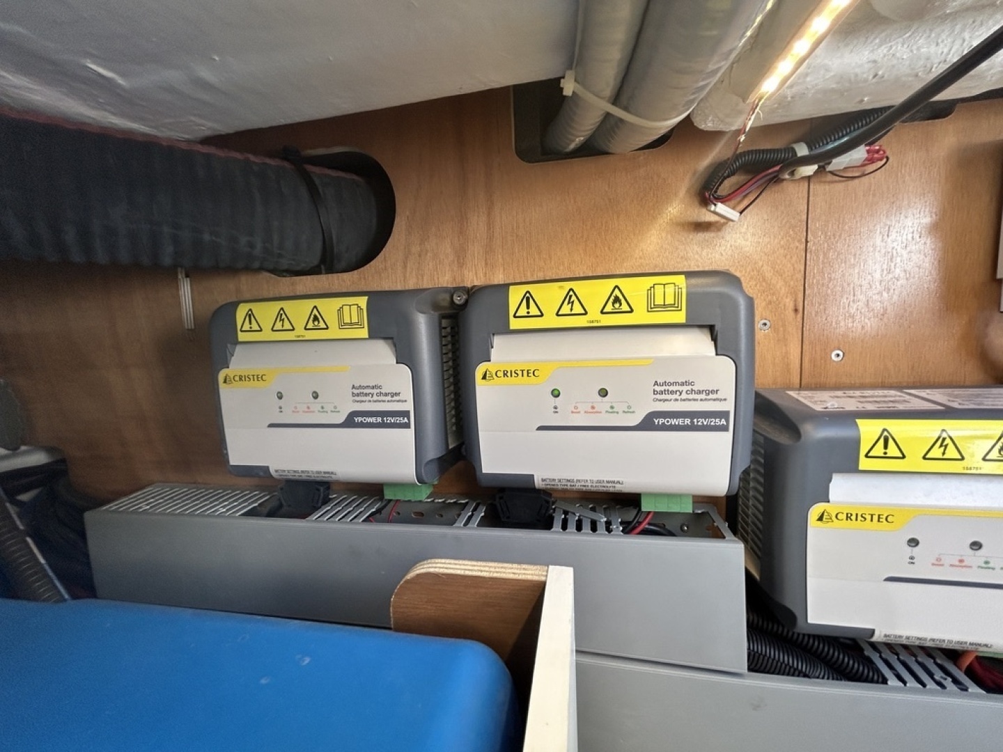 Four Cristel battery chargers 12/25a