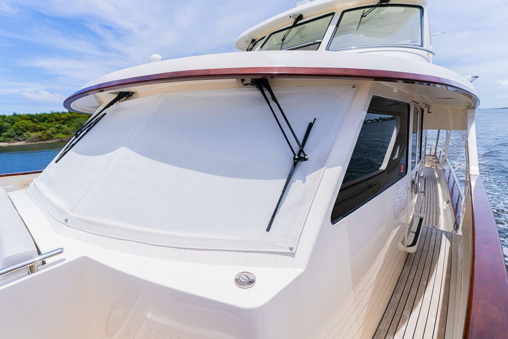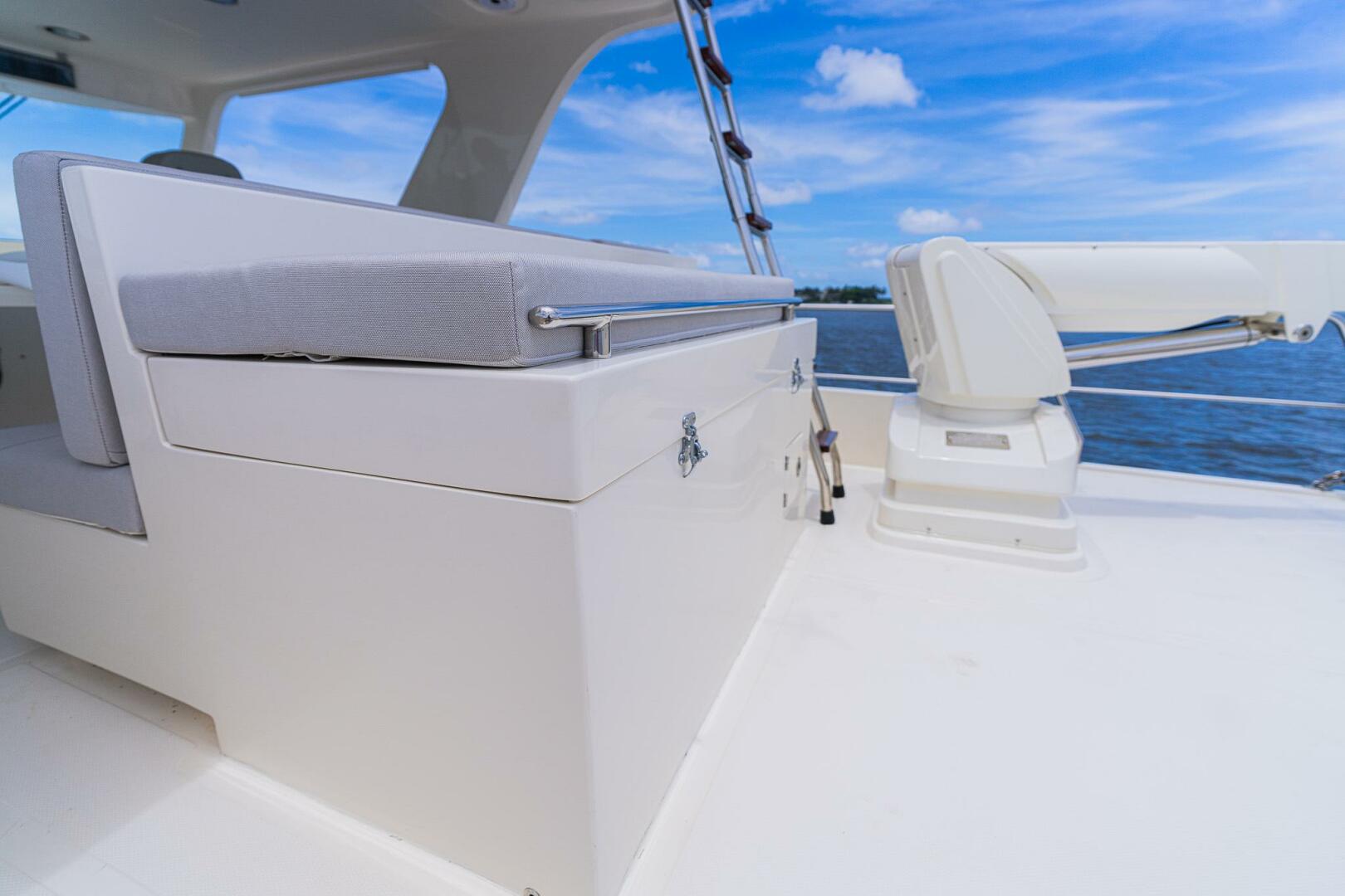 "PARAIBA" is a semi enclosed bridge. The semi enclosed bridge integrates the windshield framing structure into a hardtop and house. This creates a fixed protective windscreen with windshield wipers and defrost. The sides and rear are open which provides the salt air and cool breeze. On the aft starboard corner of the semi encloser there is a large settee with high gloss teak table. Fully equipped with an array of navigational tools including 2 large Garmin Screens, Autopilot, Thruster Controller, VHF radios, Fusion stereo and numerous others, she is a dream vessel for any Captain. There are 2 STIDD captains' chairs mounted at the helm with all navigational equipment at your fingertips. 79 inch Frigibar freezer Dockmate wireless control Electric grill Icemaker Storage throughout Custom Side Window with Removable Panels Fusion Stereo Full Garmin electronics package with Garmin Autopilot Three (3) 20" Garmin touch screen displays Garmin 6 KW Radar with 6 foot array radar Garmin Autopilot Garmin GSD - 24 Digital Black Box Sounder Garmin AIS-600 Garmin GMI 20 Instrument (3) Garmin GXM52 XM Satellite Antenna Garmin VHF300 with Hailer Horn KVH Tracvision HD7 SAT TV Four (4) Cameras Speed Depth and Wind independent displays Sonihull antifouling system