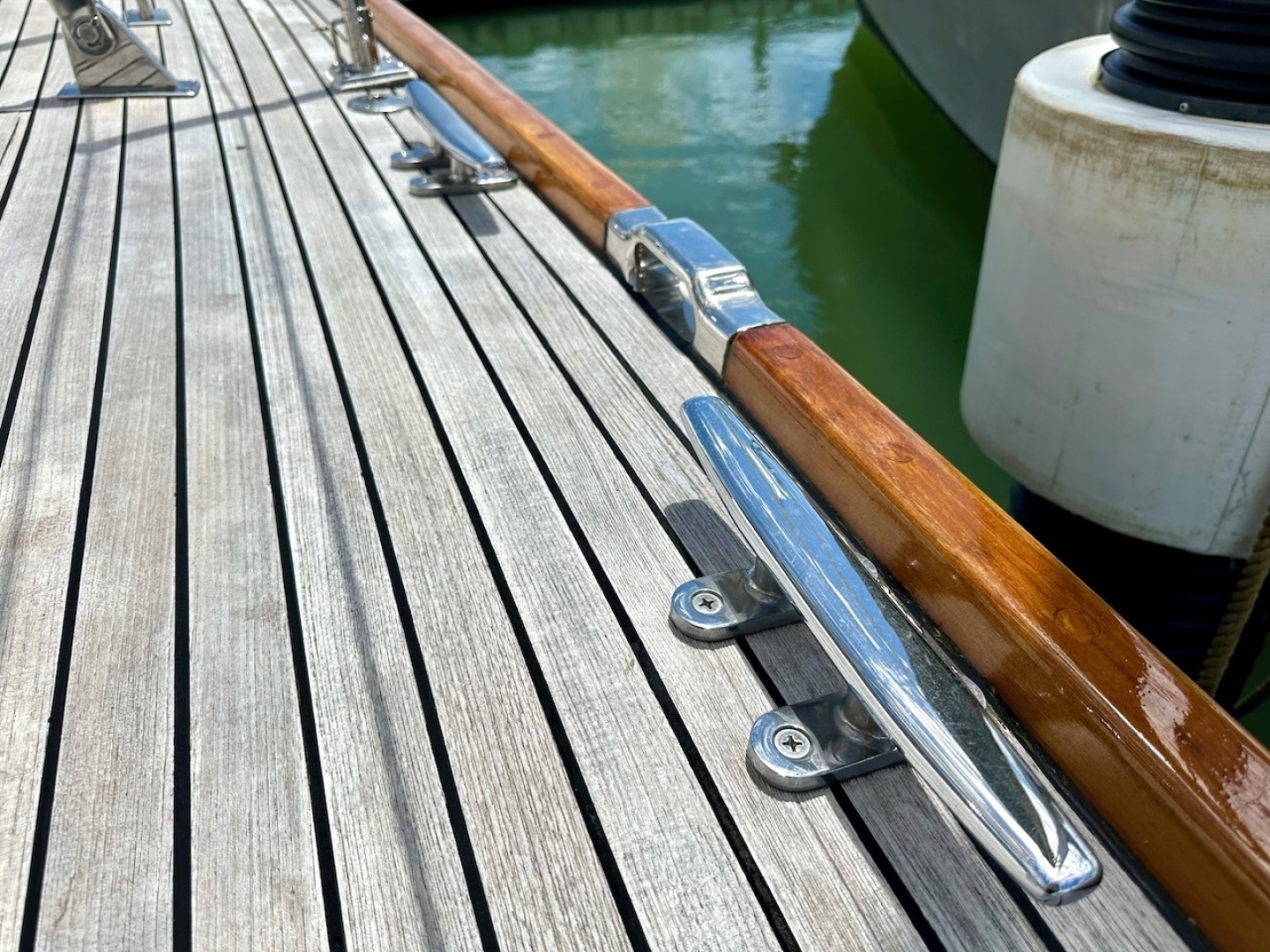 - Teak handrails added to headliner for safety