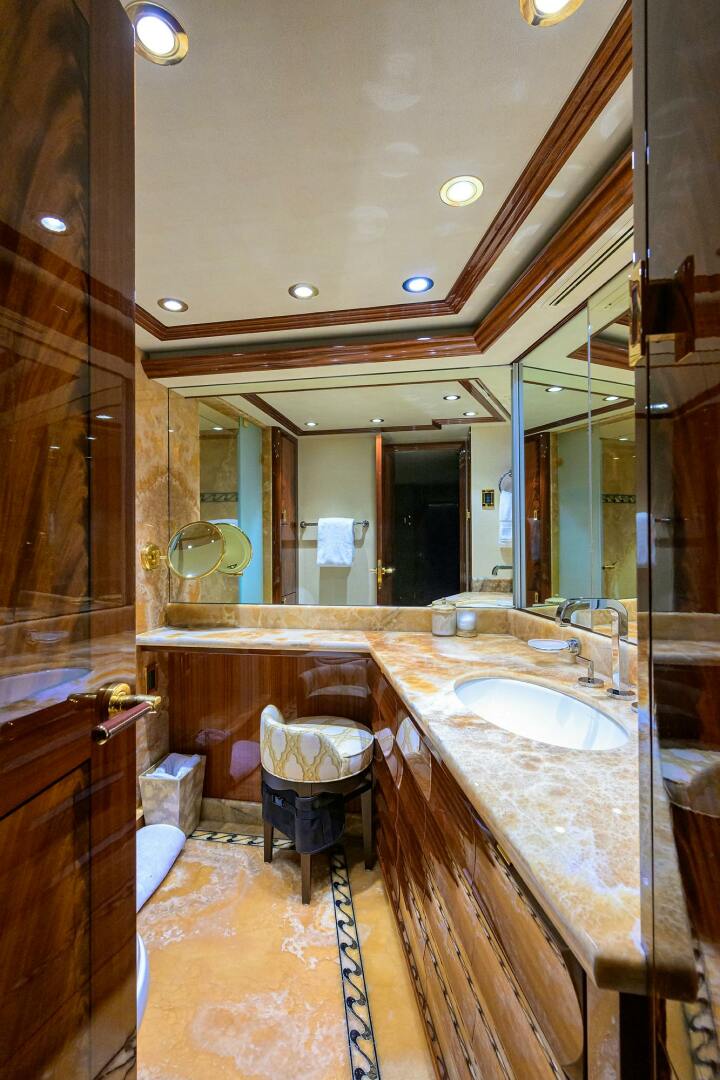REMY ROO is one of the finest Westport 112’s and most custom that has been built, featuring custom woodwork, along with many custom features from an extensive electronics package to the interior décor. She has been kept in excellent condition since she was new. The country kitchen Arrangement with large Skylight and new off-white marble and sinks provides a true family open galley. The Electric curved aft salon door open on motion and offers a stunning view of the elegant and spacious main salon. REMY ROO offers a spacious VIP forward, with ensuite head and stall shower. Owner and guests are treated to a curved staircase leading to a spacious landing aft of which is the full beam master with his/her bath. Two guest staterooms are of the forward landing with ensuite heads. Three crew staterooms are accessed either from a curved staircase on the aft deck or a watertight door from the swim platform.