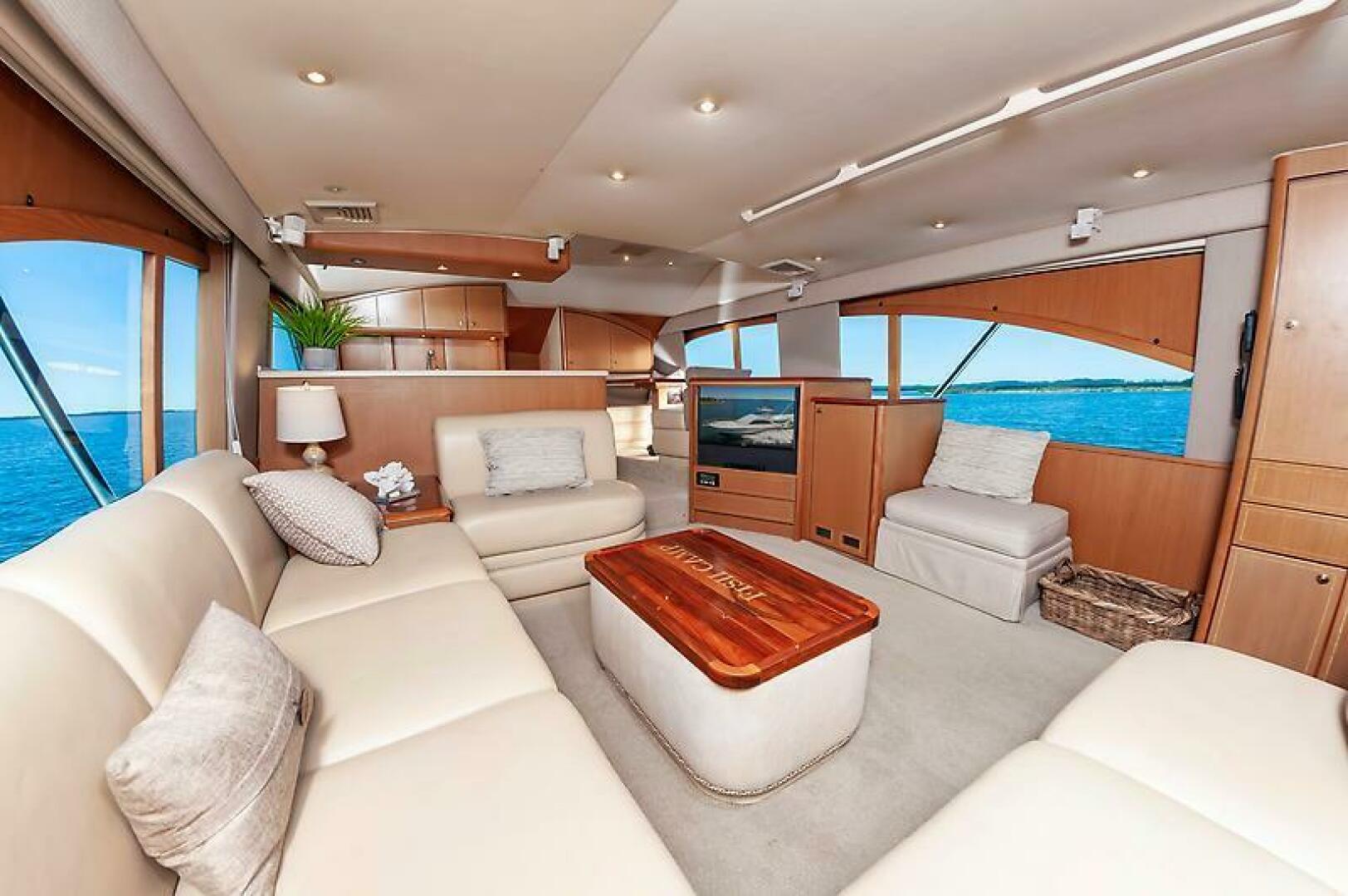 Updated version of the Ocean 56 (1999-2002), built between 2003 and 2007, with a reworked hull, redesigned interior. She is long on luxury, performance and styling. The elegant 3 stateroom interior layout, also features an open Salon/Galley/Dinette that compares well to her More Expensive competitors, in features and amenities. NOTE: Excellent engine room access, fully equipped cockpit, massive flybridge, with hardtop and wraparound seating. Cat 1015 hp engines cruise at 28-30 kts.