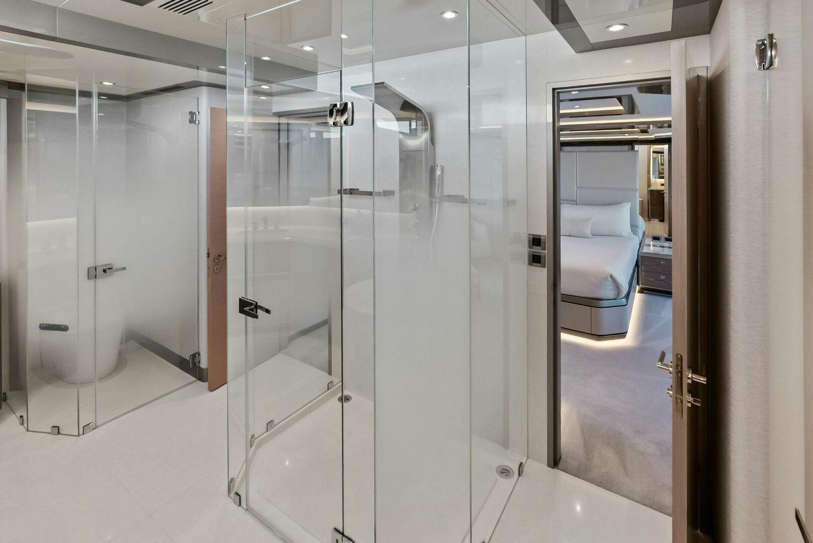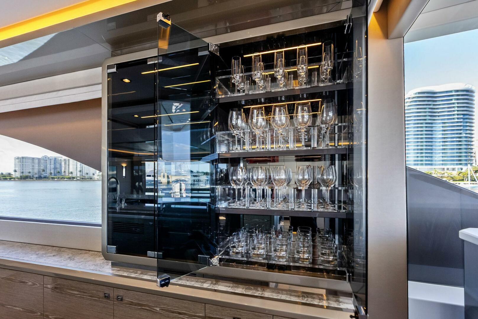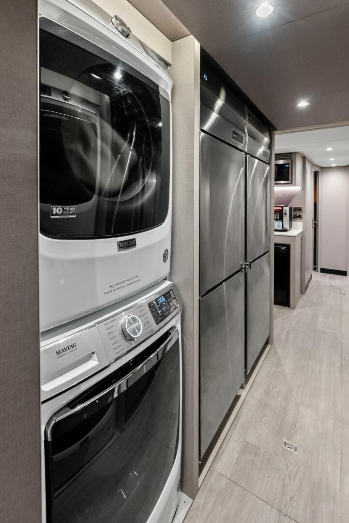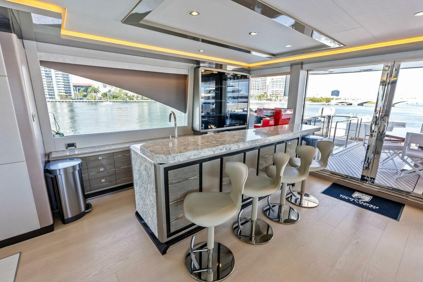Air conditioning, Beach Club, Crew Quarters, Flybridge, Gym, Jacuzzi, Office, Tender, Water Maker