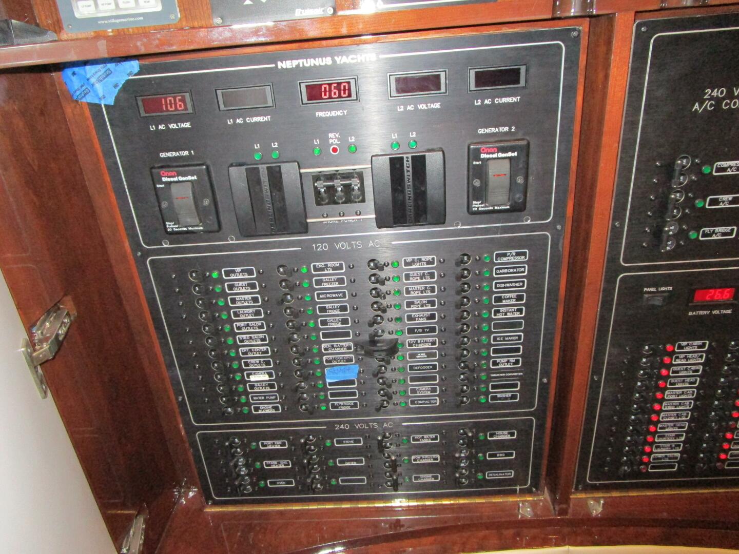 - 12V electronics panel under helm with (30) breaker protected circuits & digital volt & amp meters