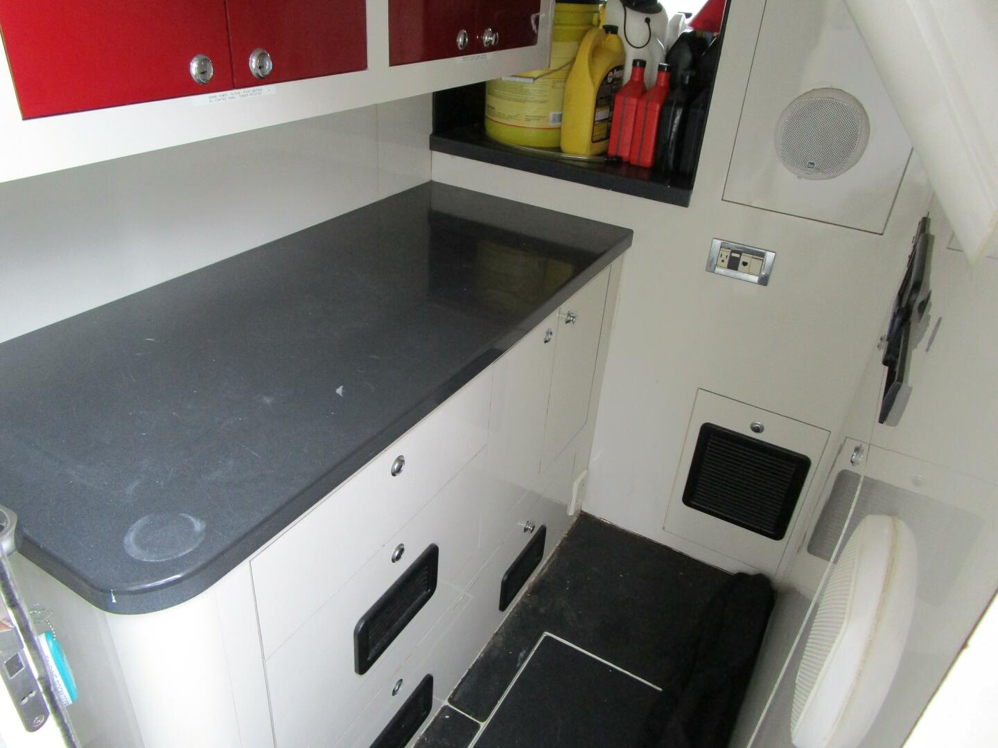 Also in this area there are digital AC controls, (2) pairs of Clarion 2 stage speakers, seven overhead LED mini spots, and two red night navigation lights.