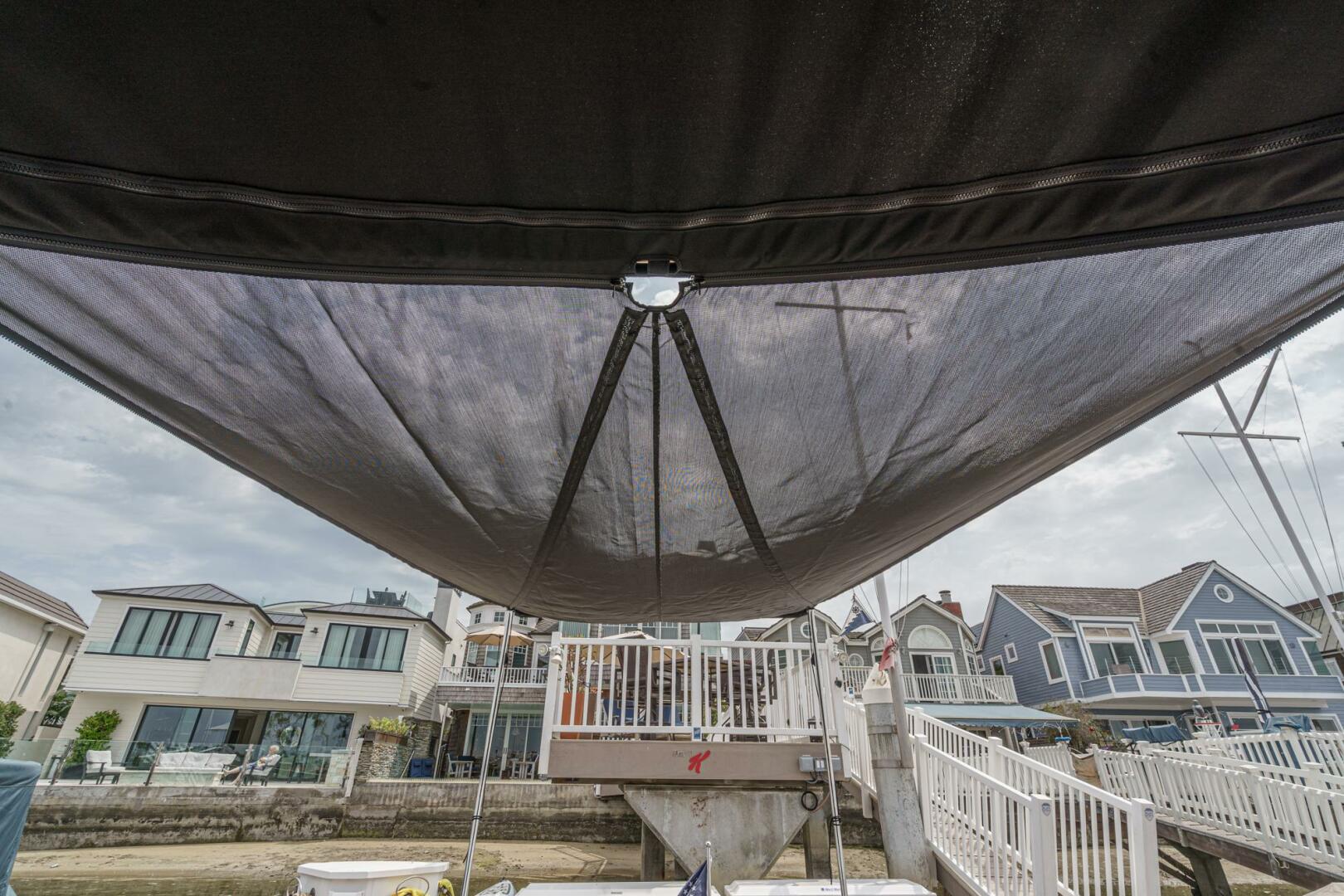 Storage for Bimini top support rails, aft sunshade, sunshade support rails, removable radar stand, removable grab rail for walkarounds