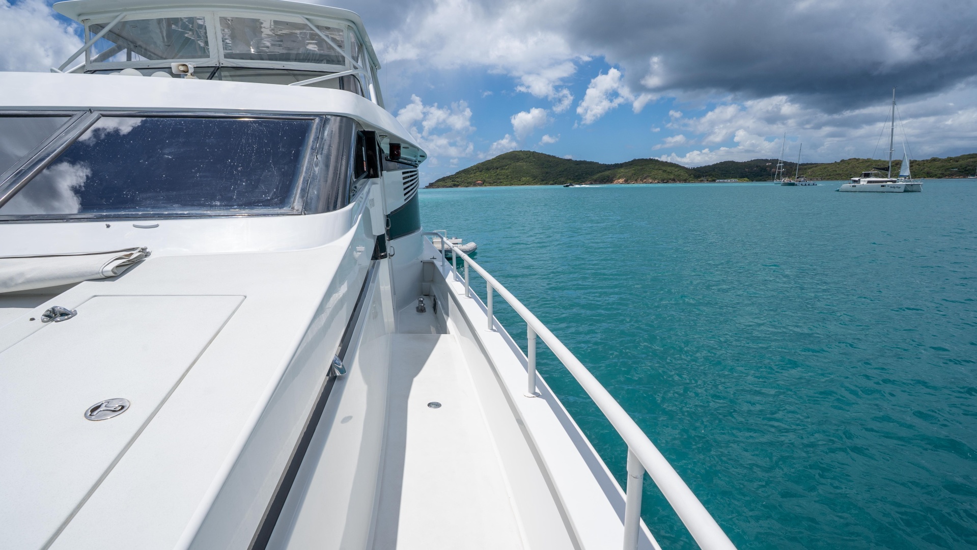 Continuing forward, the foredeck offers yet another standout feature—a jacuzzi with surrounding sunpad space, creating a private retreat with sweeping views. This area is perfect for relaxing in the sun, enjoying cocktails, or taking in sunsets in complete comfort.