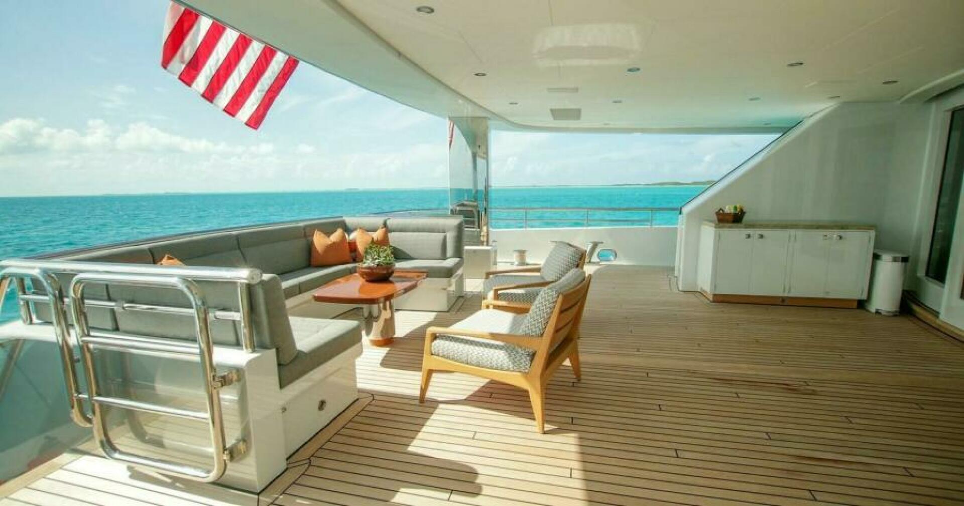 W boasts vast outdoor living areas, inviting guests to embrace the alfresco lifestyle. The sundeck serves as the heart of the yacht, perfect for basking in the sun. Enjoy multiple sunbathing spots, a large Jacuzzi, a shaded bar, and an outdoor dining area. Both the bridge deck aft and the main deck aft are equipped with comfortable lounging areas ideal for social gatherings.
