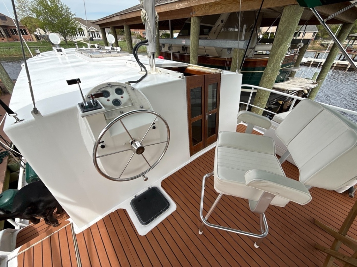 Her aluminum hull delivers both efficiency and resilience, creating an economical and dependable cruising platform. In 1995, her interior was completely stripped and reimagined, resulting in a highly practical layout ideally suited for extended cruising along the ICW, through the locks and canals, and into every nook of our inland waterways. She can comfortably accommodate four guests in two private staterooms, each with its own head, while maintaining a low profile that allows her to clear bridges under 13 feet— a valuable advantage for serious cruisers.