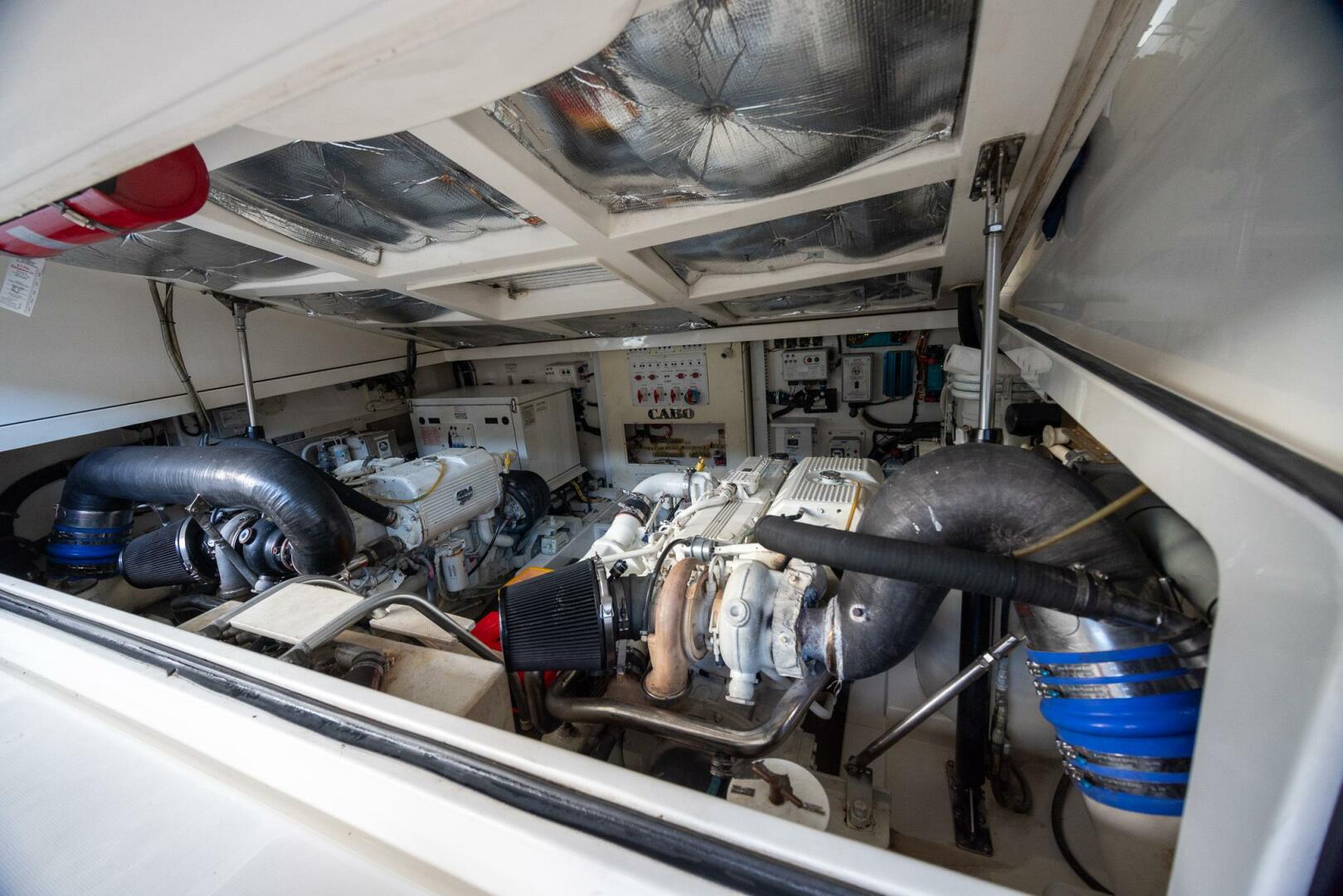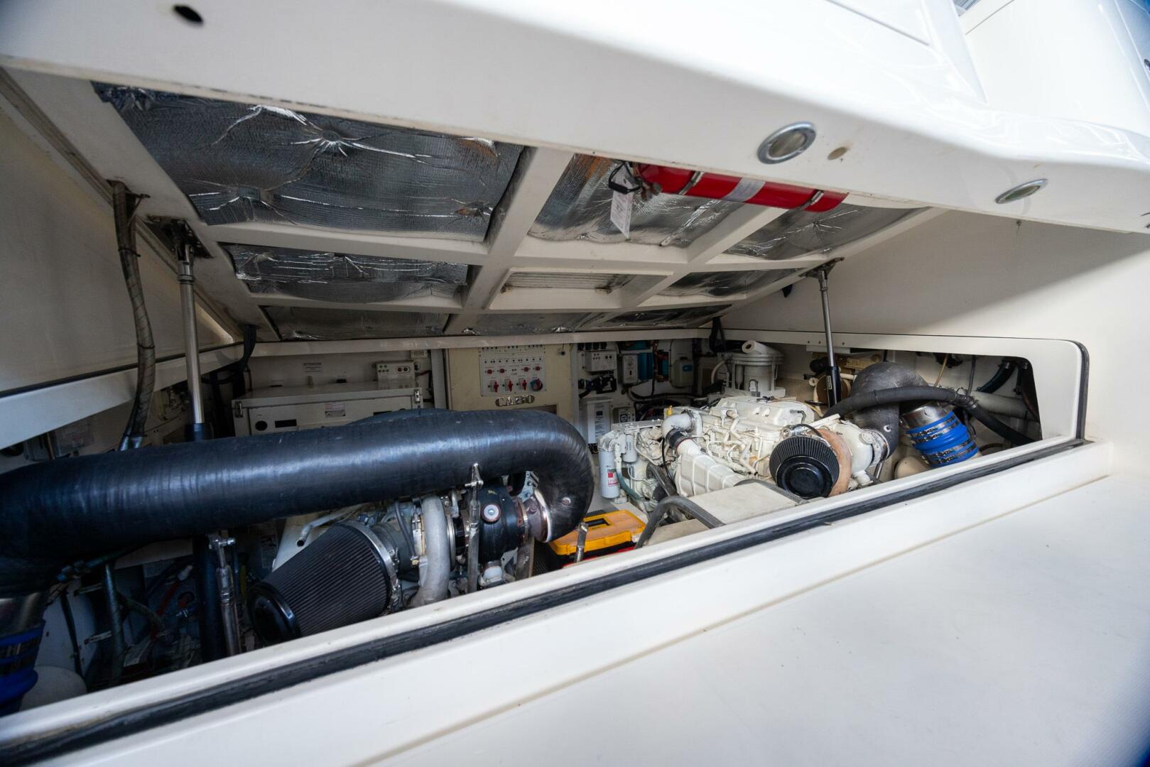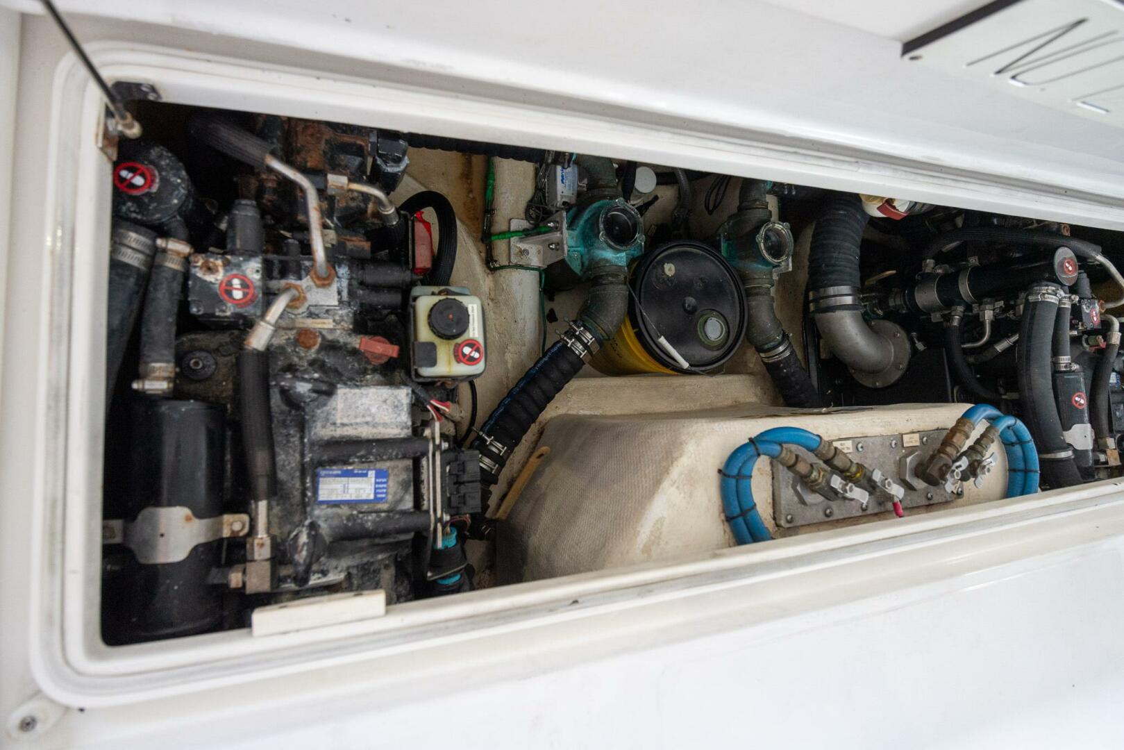 - Molded fiberglass helm deck, hydraulically lifted with cockpit control unit