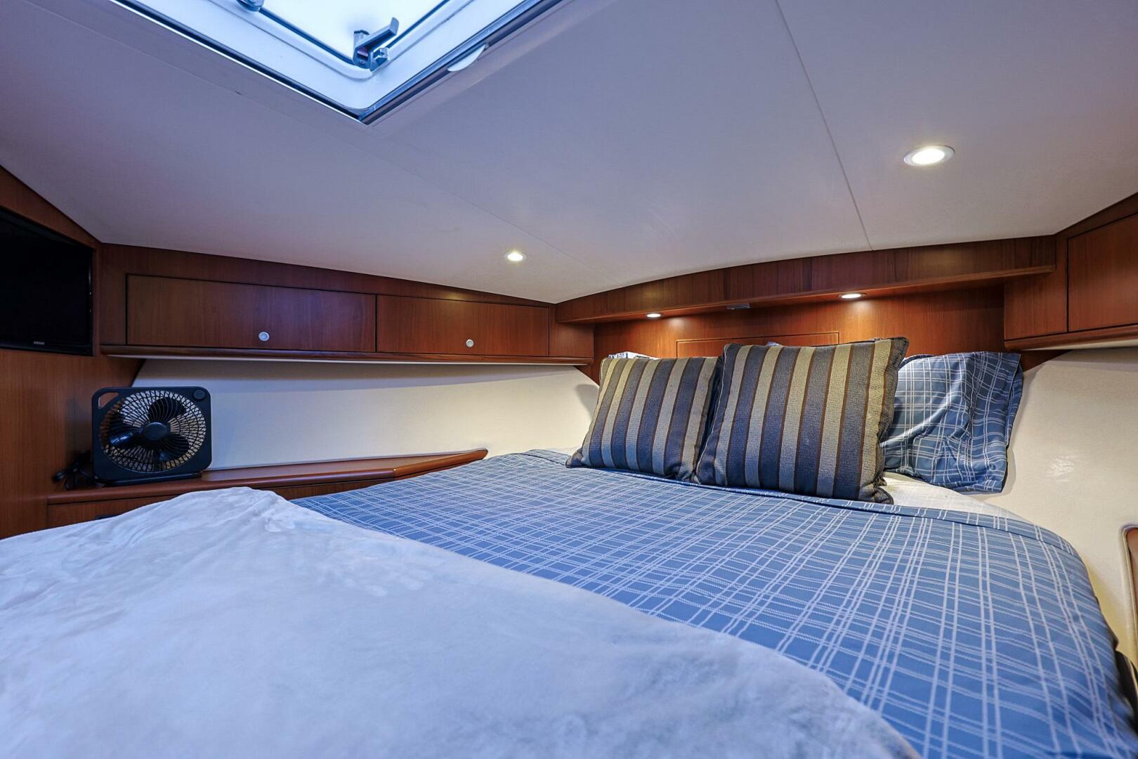 - Accommodations - The cabin of the 40 Hardtop Express showcases graceful spaciousness and refined comfort, which belie the boat's hard-core fishability. A starboard settee seats six and converts to upper and lower bunks when it's time to recharge overnight. Forward, the master stateroom features a large island double berth with ample drawer and locker space. The galley is fully equipped for fine cuisine, or just for feeding a hungry crew. A cedar- lined hanging closet provides additional stowage and, because CABO is all about fishing, lockers located port and starboard can hold up to ten rods. An optional layout featuring a second stateroom on the starboard side is available for extra privacy when hosting larger crews.