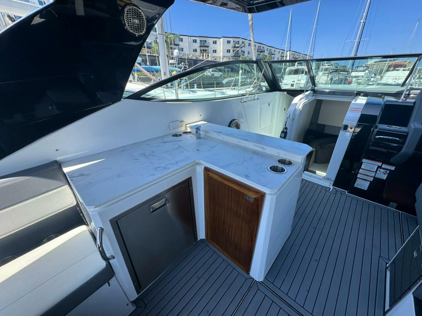 - Cockpit wet bar with (2) bar stools